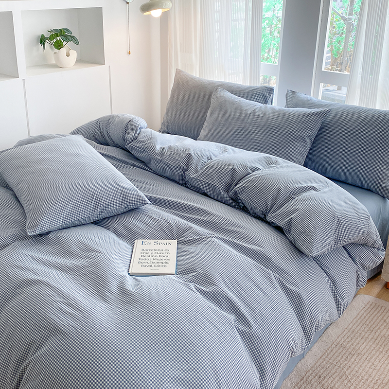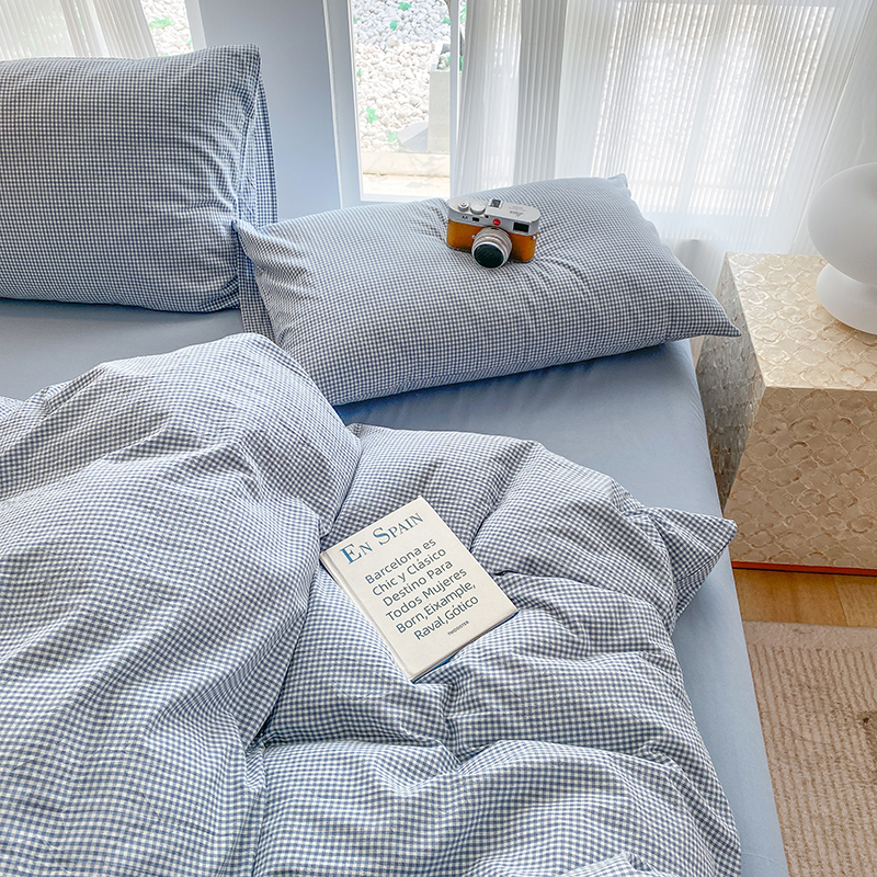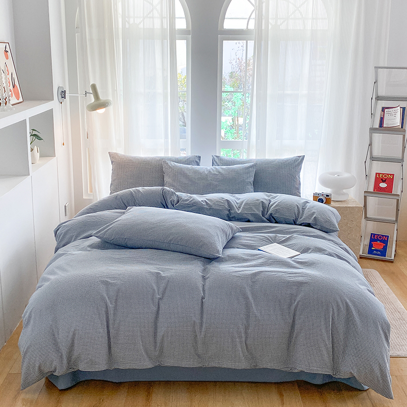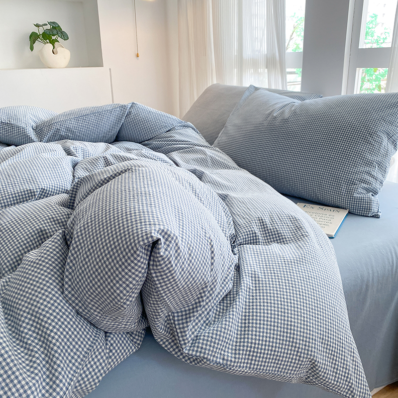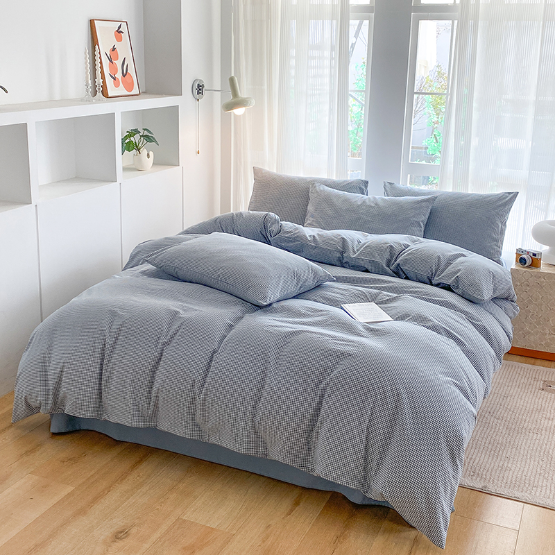 当前位置: 91家纺网 > 商品网购 > 床品套件 > 四件套 > 尚品本色2025年新款简约风全棉水洗棉格子条纹系列四件套 浅蓝密格