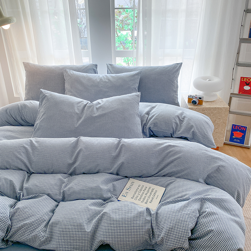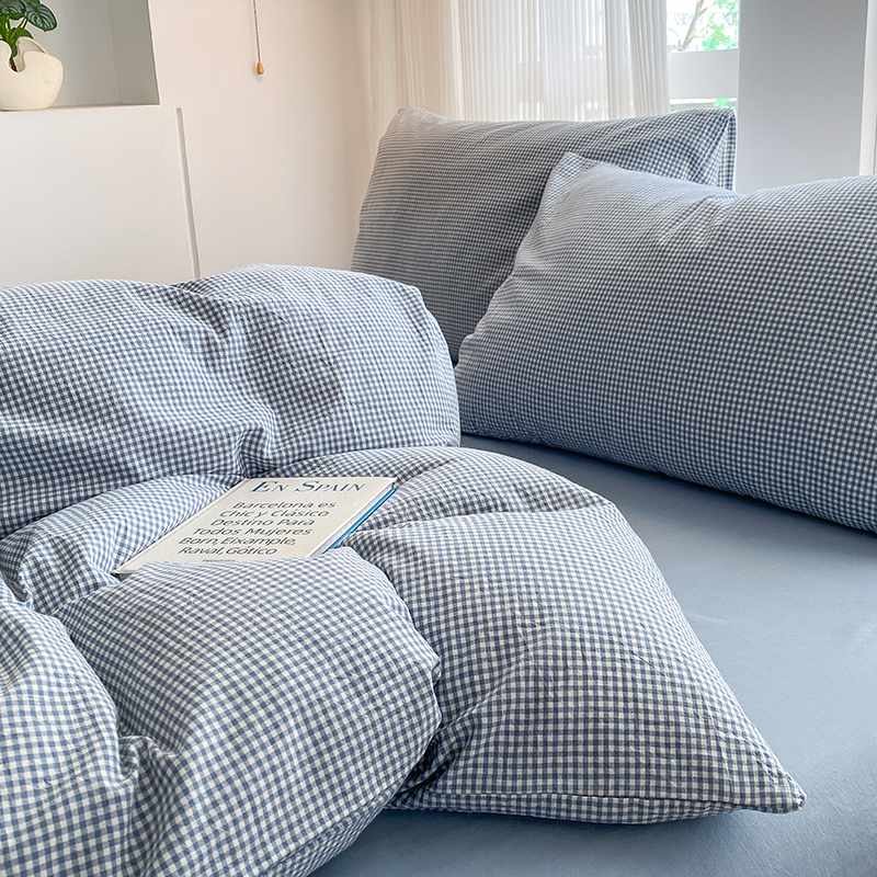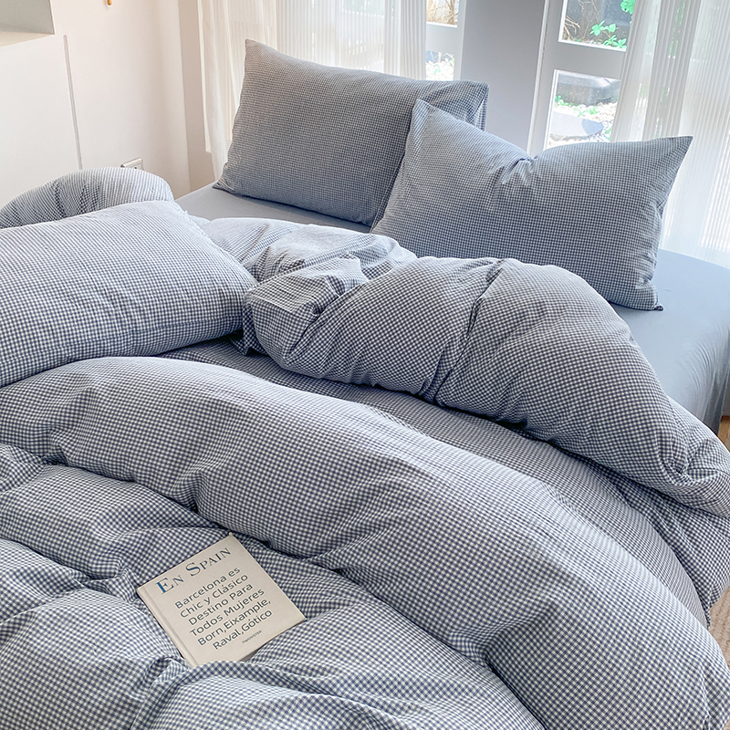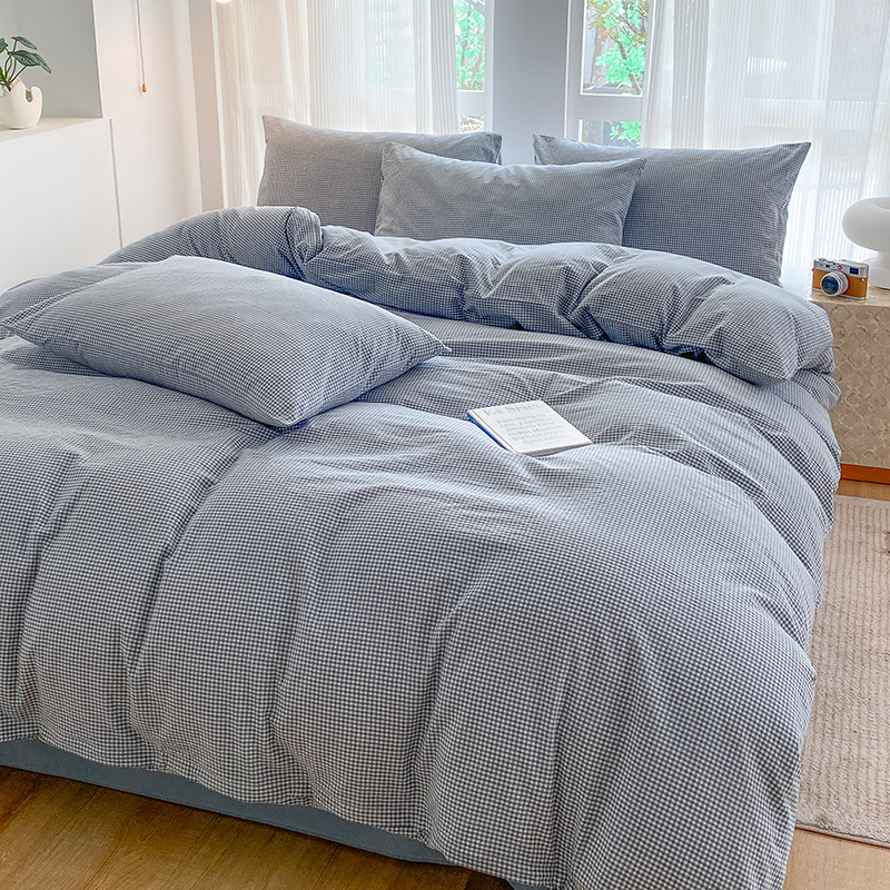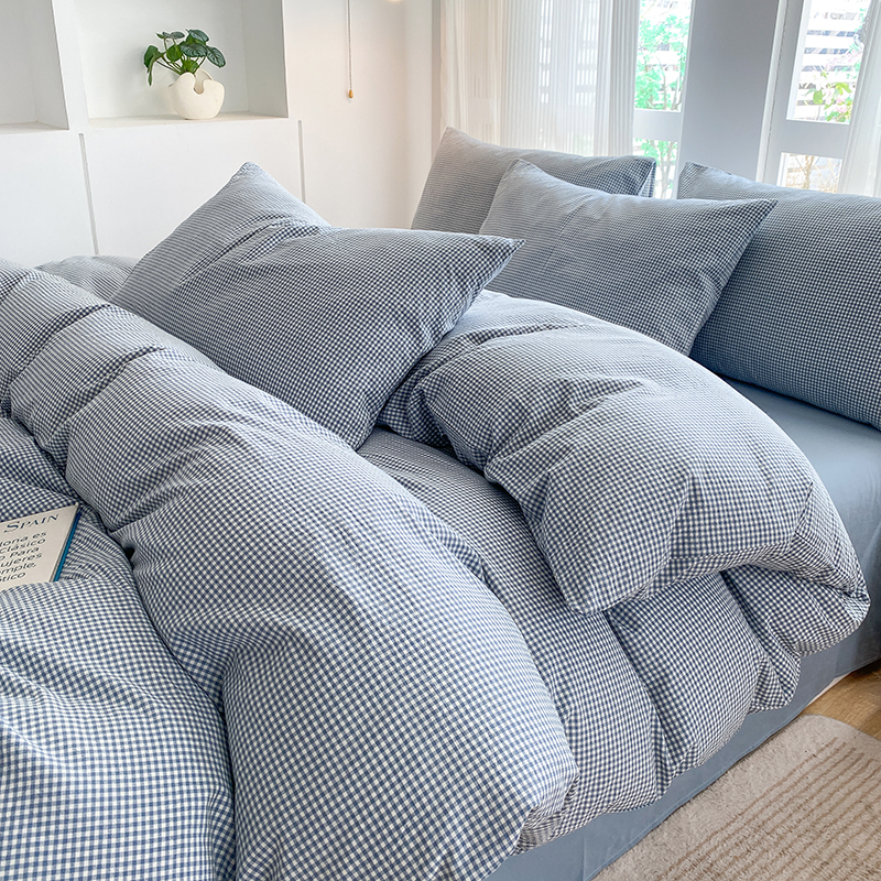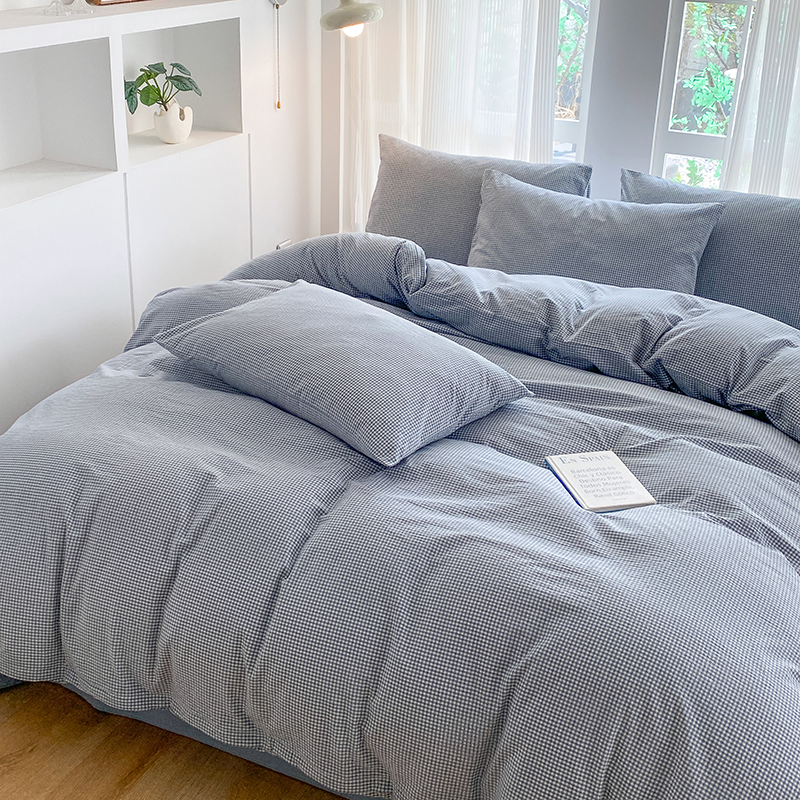 当前位置: 91家纺网 > 商品网购 > 床品套件 > 四件套 > 尚品本色2025年新款简约风全棉水洗棉格子条纹系列四件套 浅蓝密格