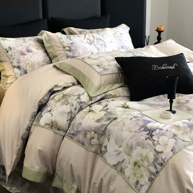 佳汐蓝家纺 2025秋冬新款臻棉磨毛数码印花大拼角四件套 雅佳茹-粉