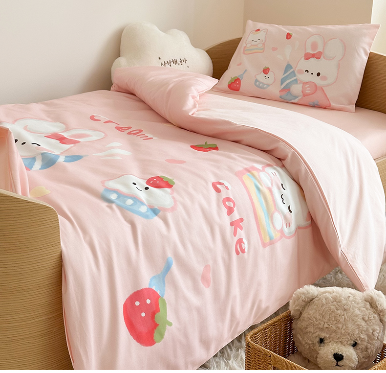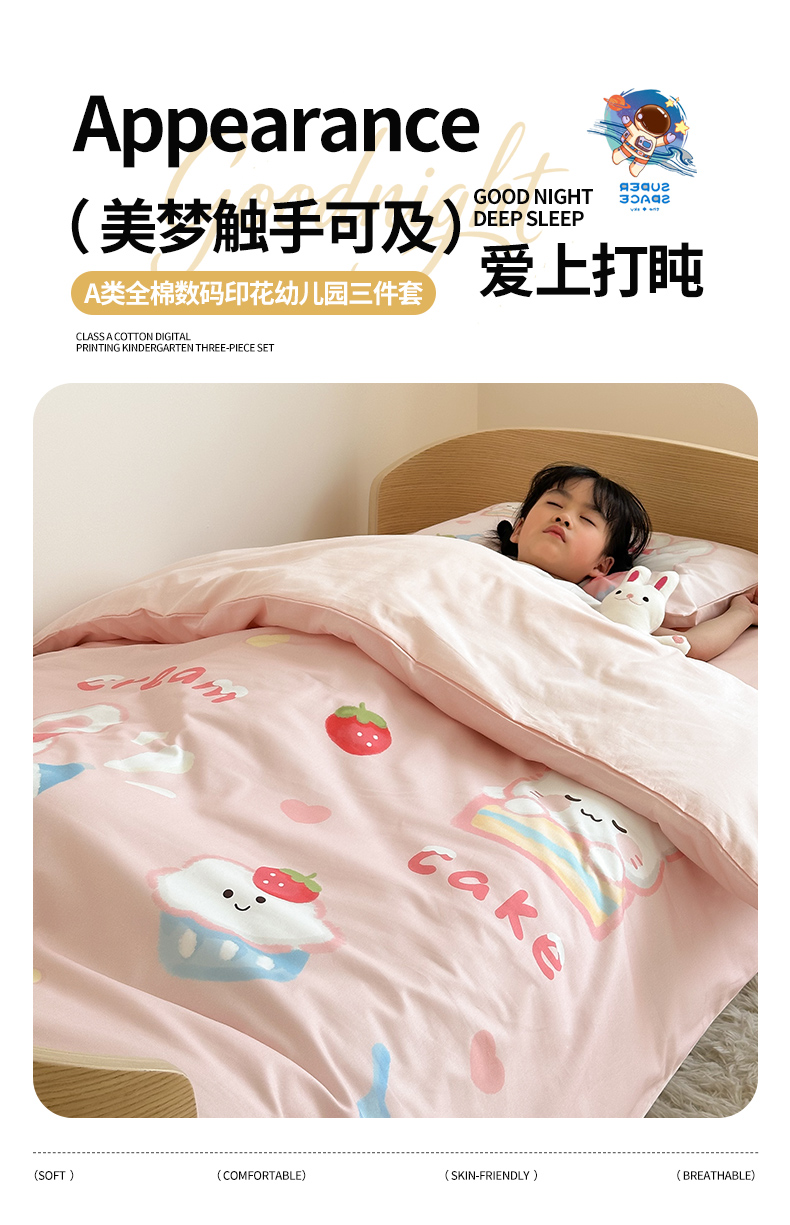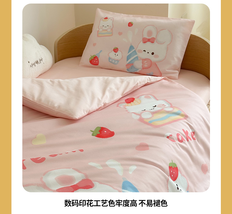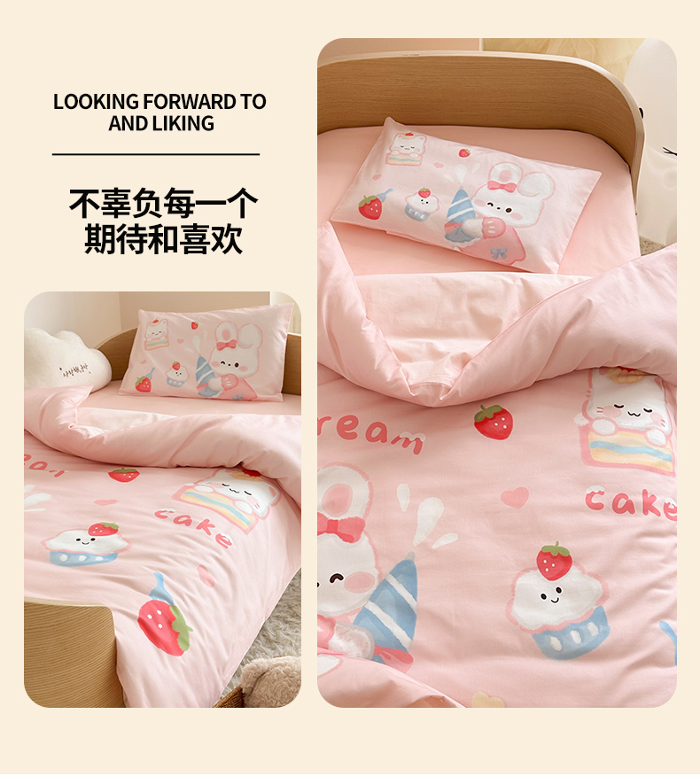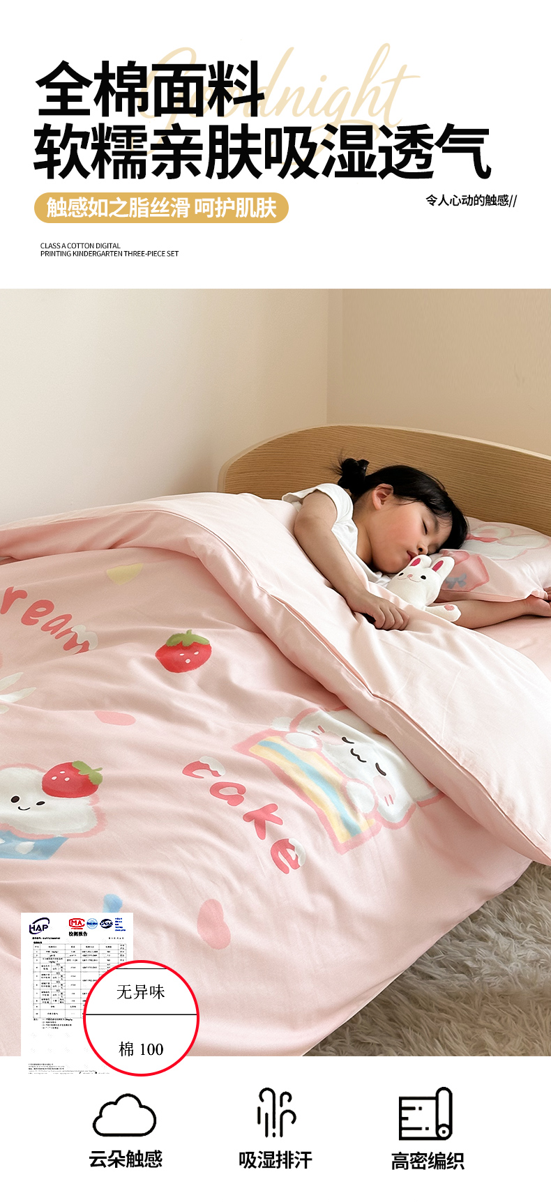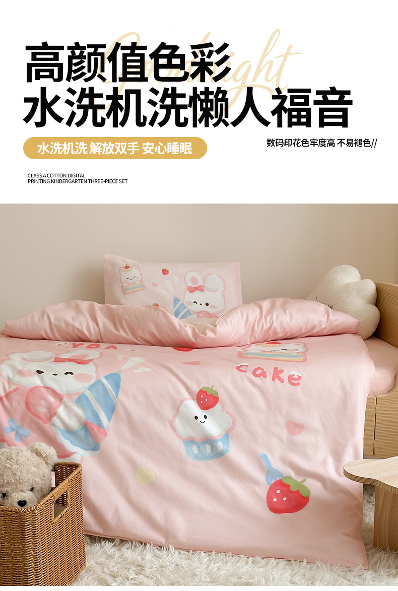 当前位置: 91家纺网 > 商品网购 > 床品套件 > 四件套 > 全棉普通四件套 > 嗨生活 2025新款A类全棉纯棉40s数码印花原创大版卡通幼儿园套件 幼儿园三件套 萌小兔
