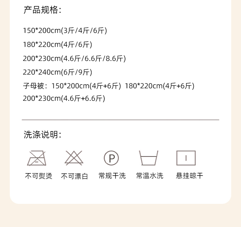 150x200cm全拉链子母被-3+6斤 | ¥130.00 |