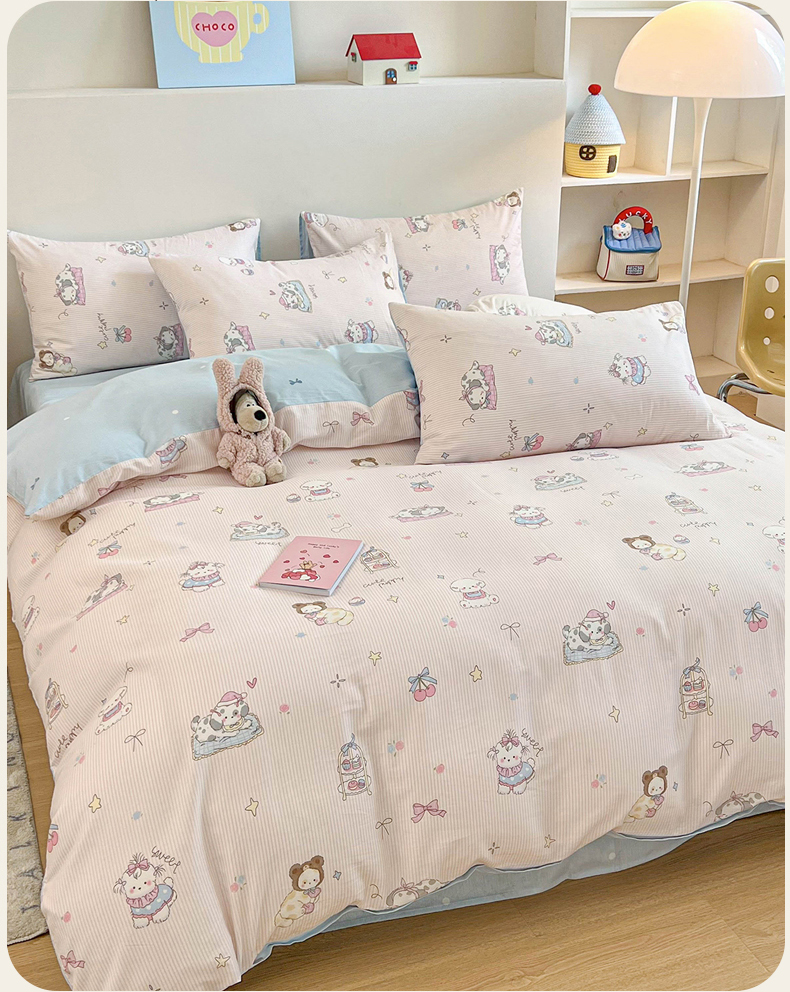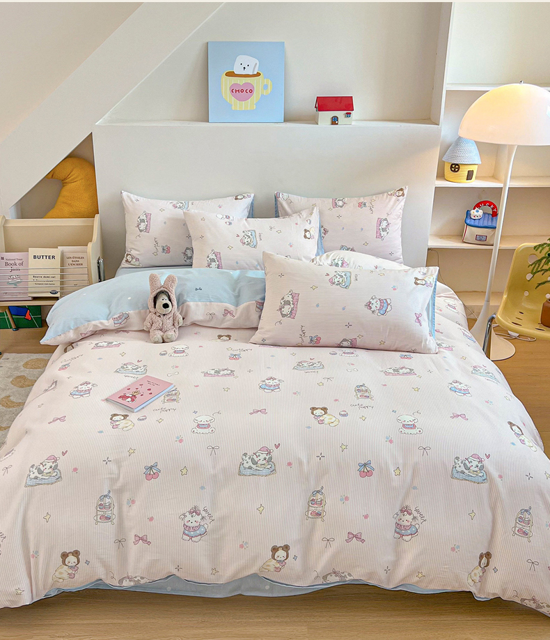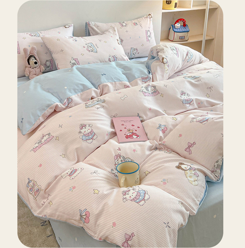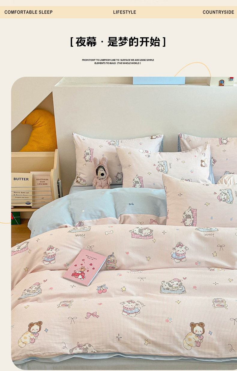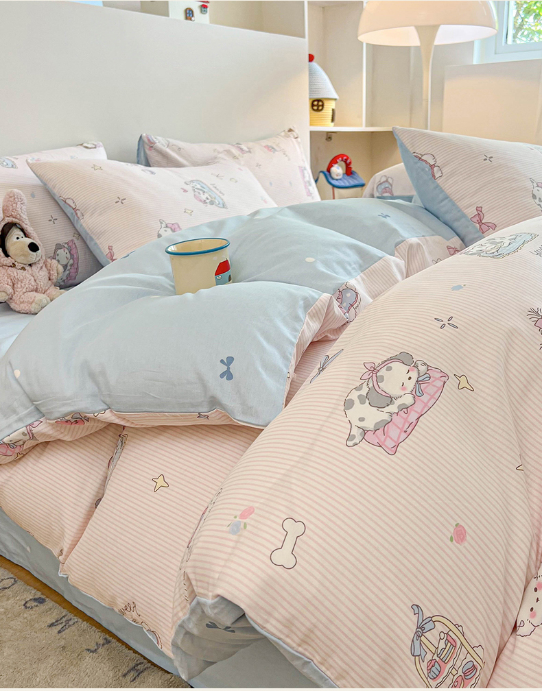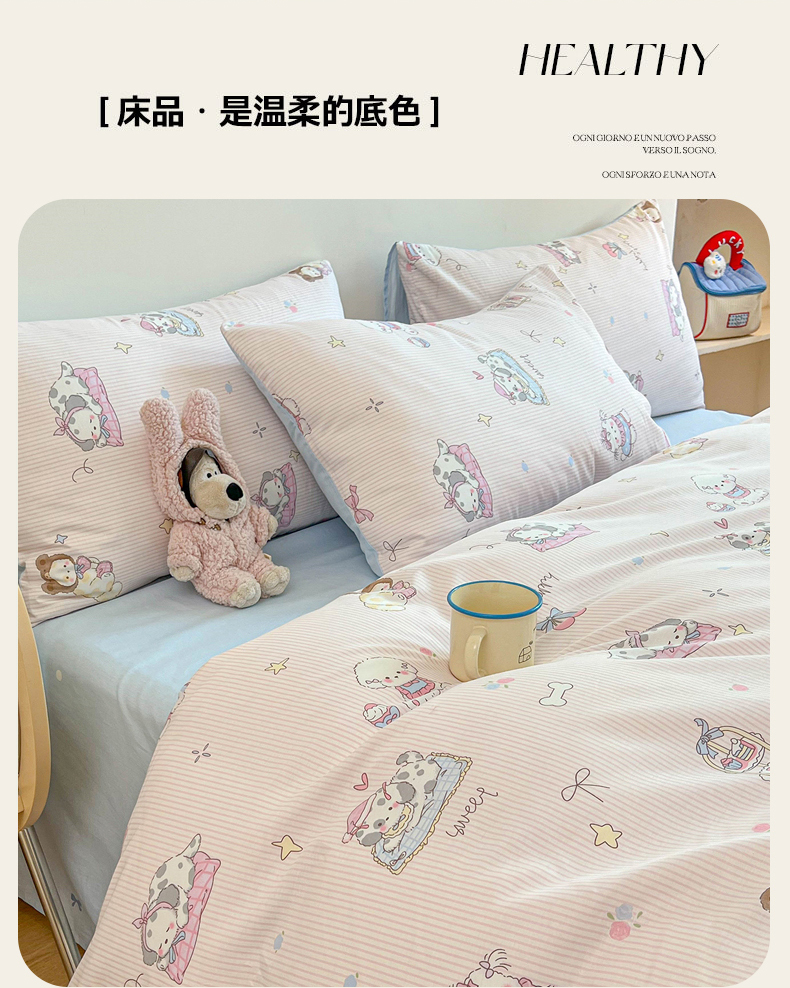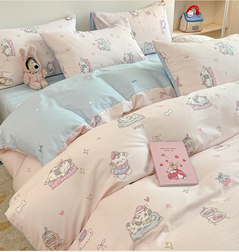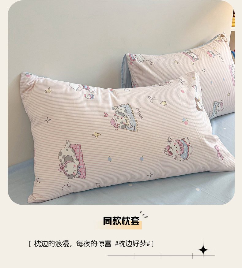 当前位置: 91家纺网 > 商品网购 > 床品套件 > 四件套 > 麦伦家居 2025新款40s斜纹全棉纯棉跑量款卡通小清新四件套 甜品小狗