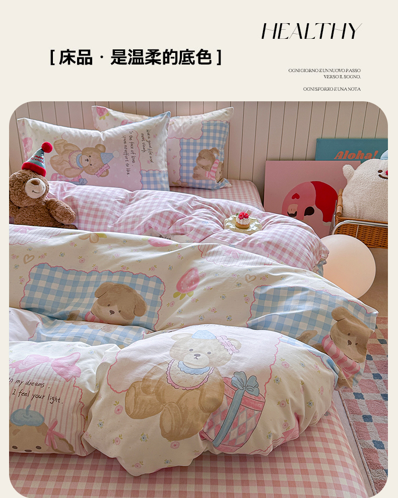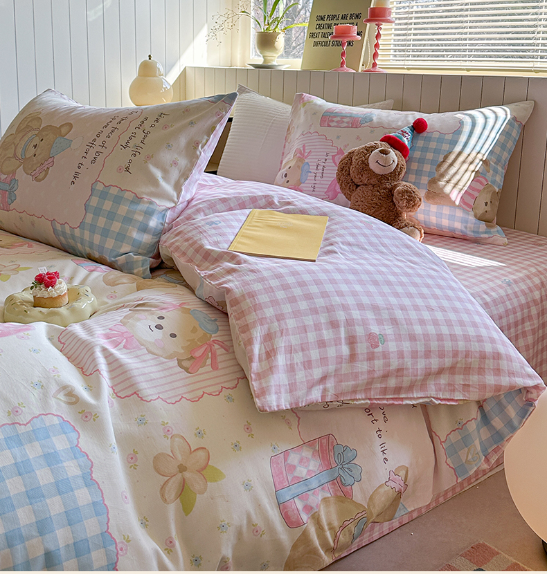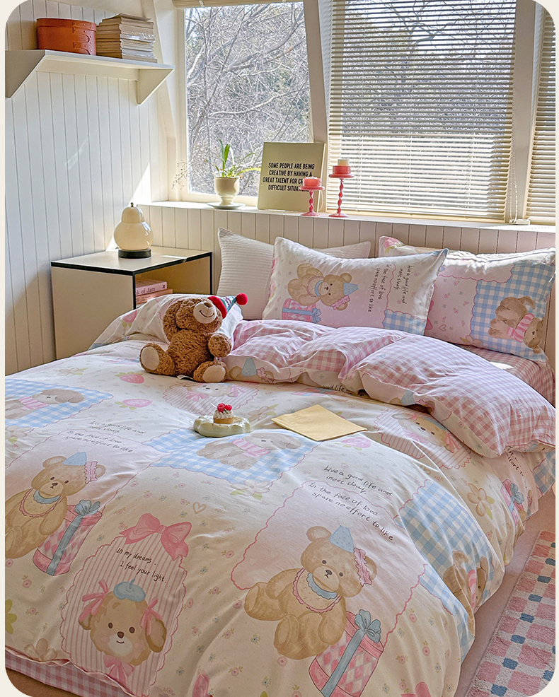当前位置: 91家纺网 > 商品网购 > 床品套件 > 四件套 > 麦伦家居 2025新款40s斜纹全棉纯棉跑量款卡通小清新四件套 甜甜心事