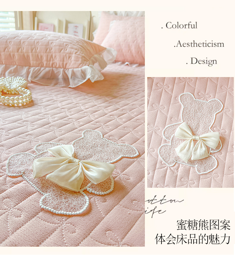 • 91家纺网 家纺一手货源 找家纺 麒豆豆 2025新款优舒棉花边床笠-蜜糖熊 粉