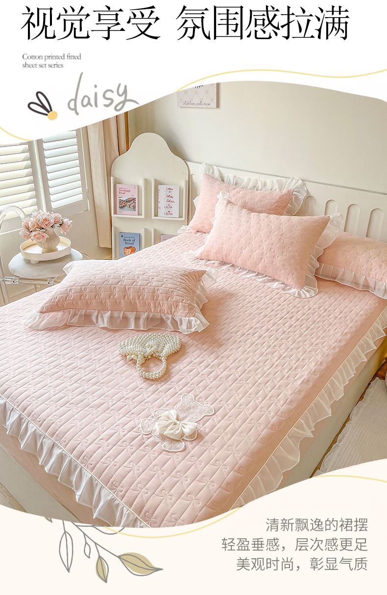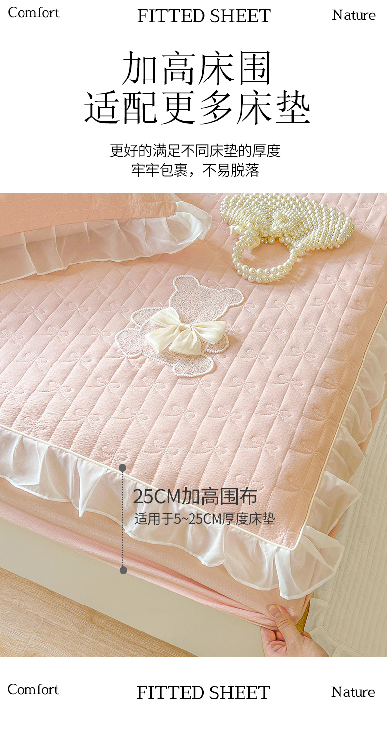麒豆豆 2025新款优舒棉花边床笠-蜜糖熊 粉