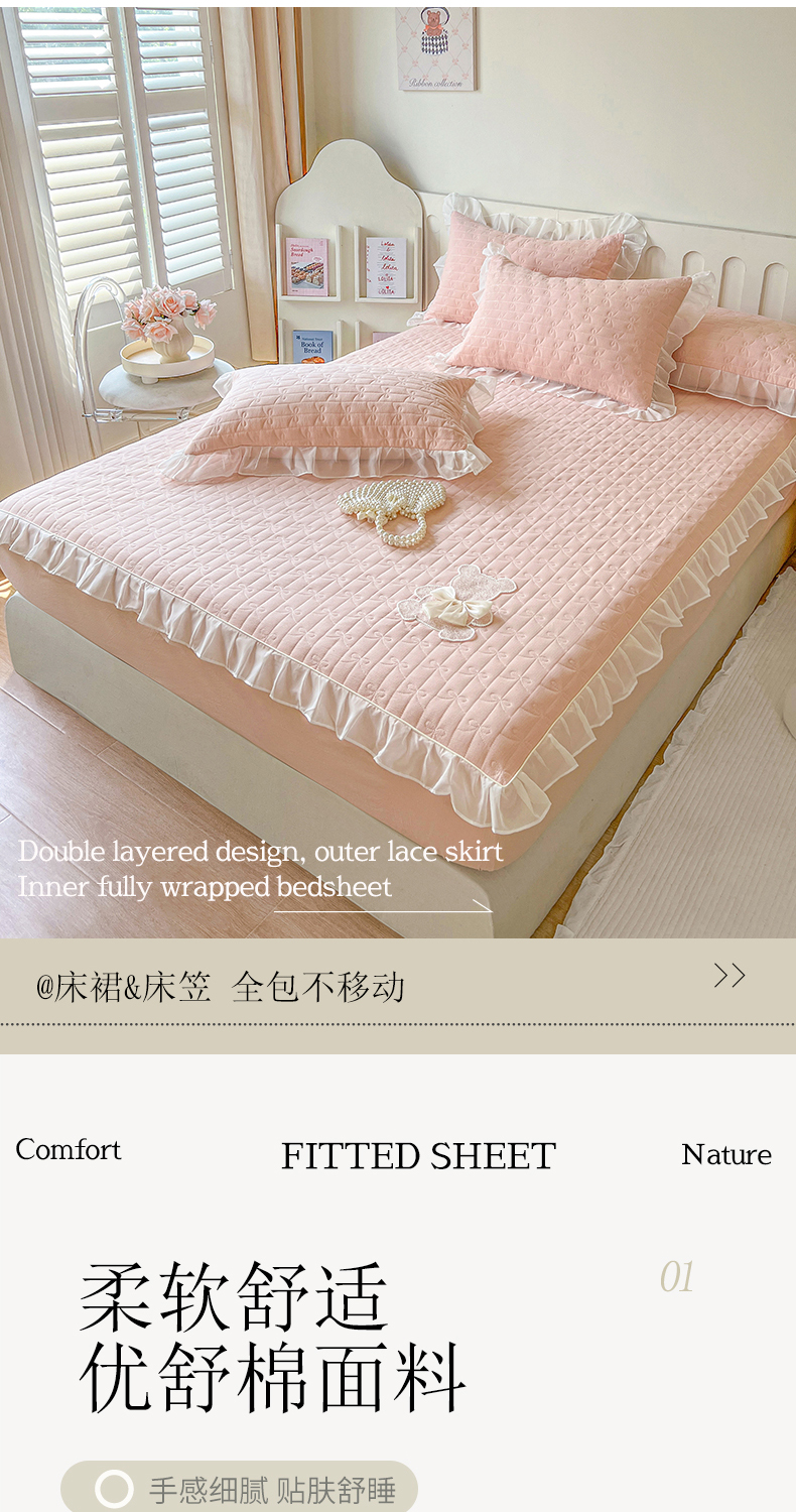 (总)麒豆豆 2025新款全棉蕾丝边床裙款床笠-晨暮花间,晨暮花间-绯红,晨暮花间-粉色,晨暮花间-麦绿,晨暮花间-米色,晨暮花间-浅紫,晨暮花间-雾蓝