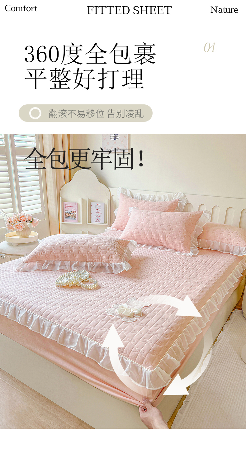 (总)麒豆豆 2025新款优舒棉花边床笠-蜜糖熊,白,粉,黄,灰,绿