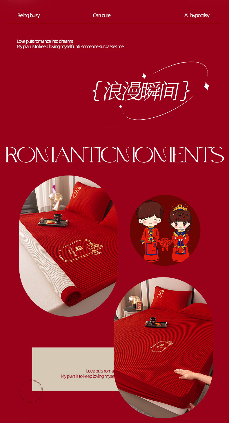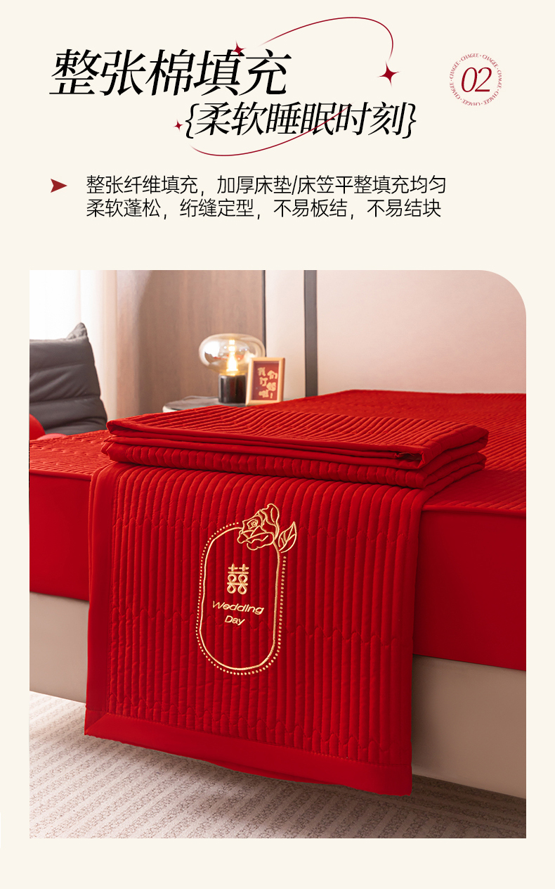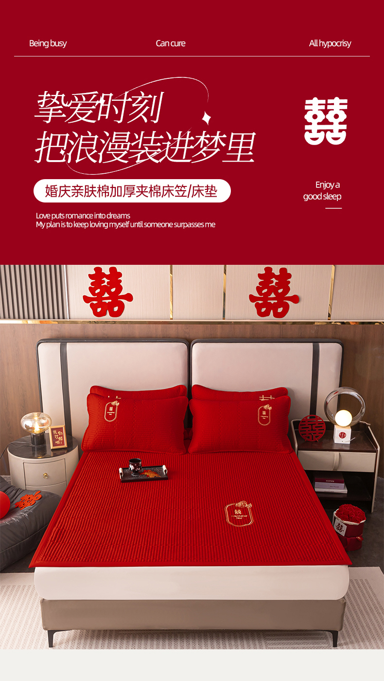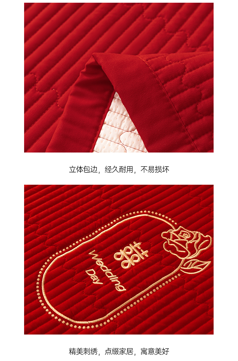 卓缦家纺 2025新款婚庆加厚软床垫软床笠三件套婚庆床单床盖 情缘-床护垫
