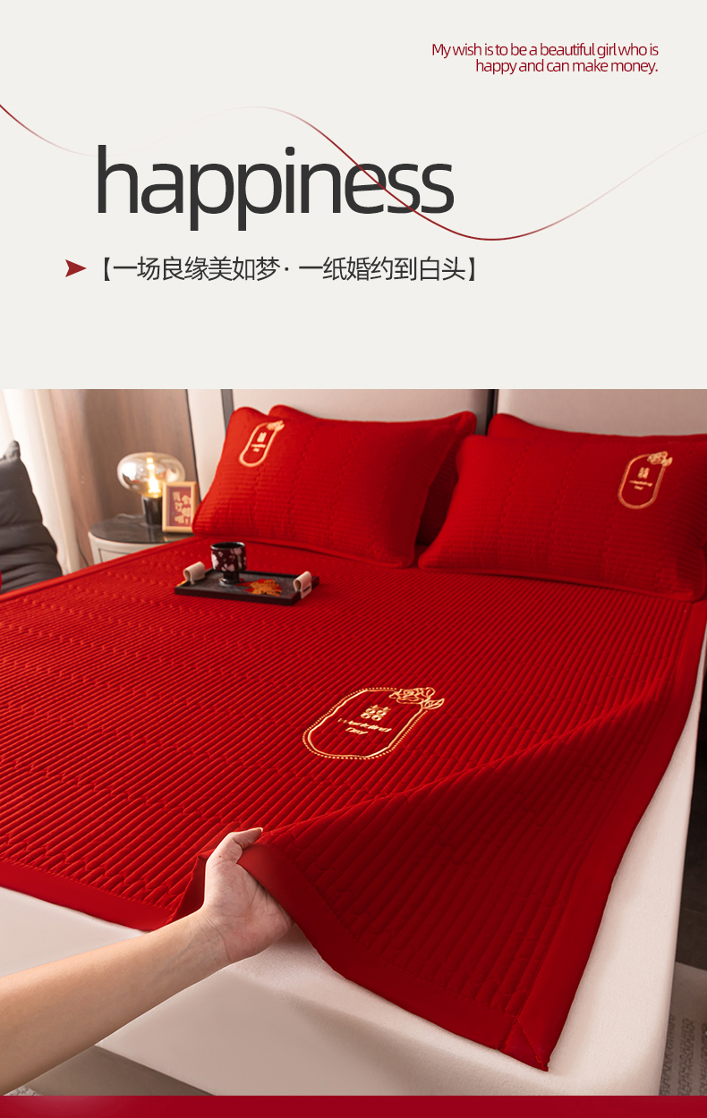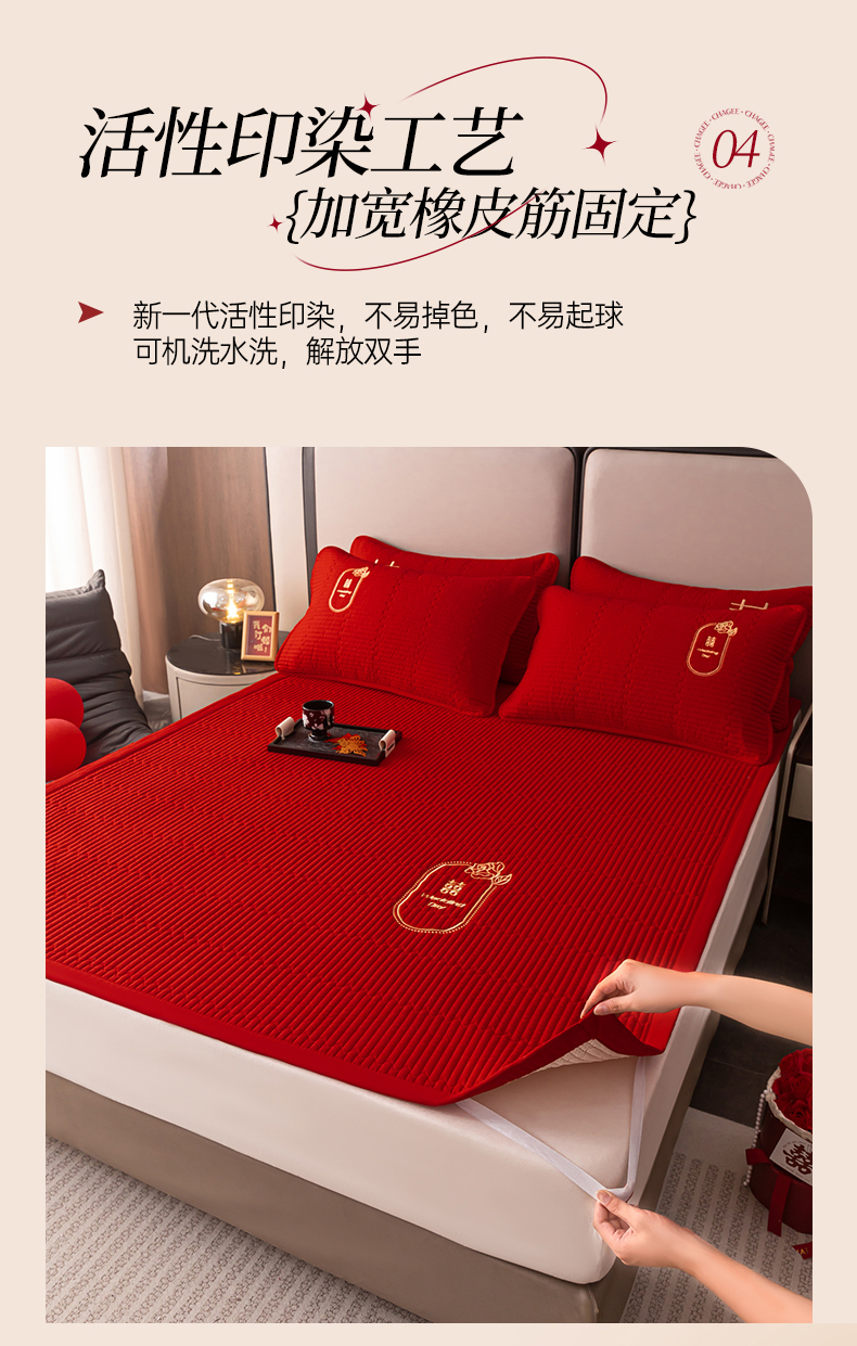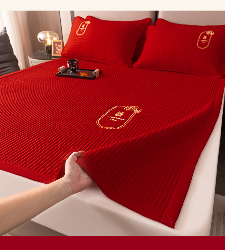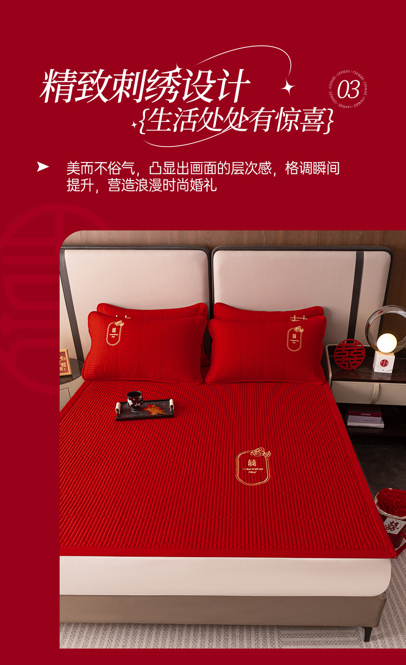 卓缦家纺 2025新款婚庆加厚软床垫软床笠三件套婚庆床单床盖 情缘-床护垫