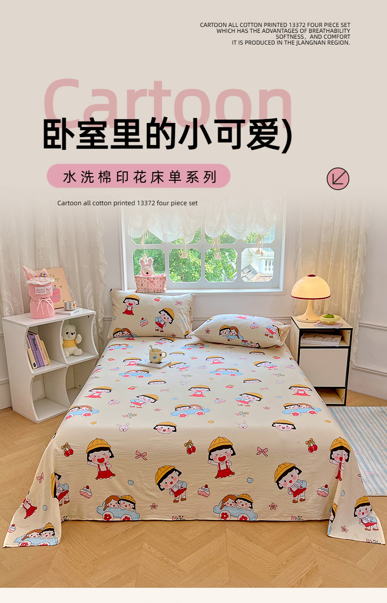 • 91家纺网 家纺一手货源 找家纺 优尚佳生活馆 2025新款亲肤水洗棉印花床单单品床单单件单床单 床单款-樱桃小丸子