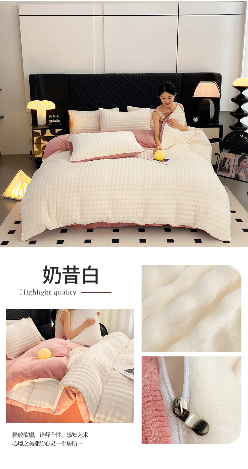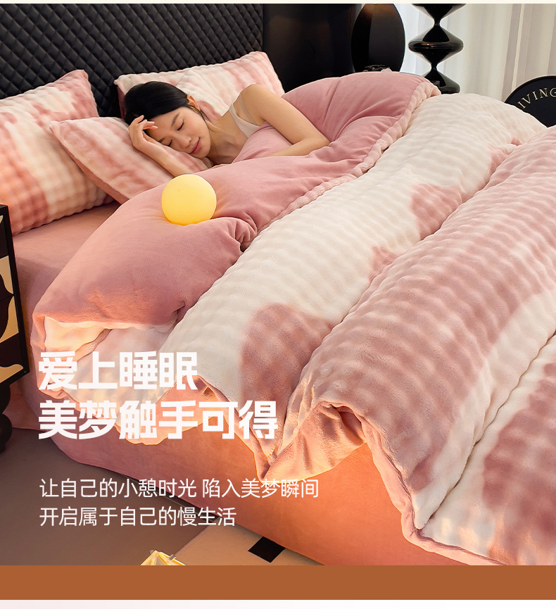 (总)言熙居家纺 2025新款加厚高克重兔兔绒牛奶绒四件套