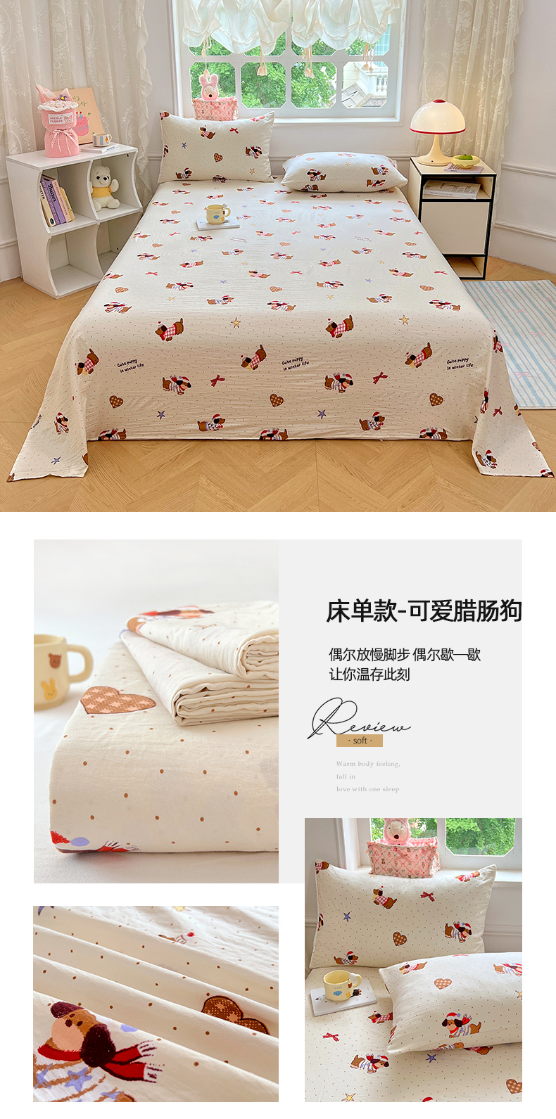 优佳优品 2025新款亲肤水洗棉印花床单单品床单单件单床单 床单款-狗狗聚会