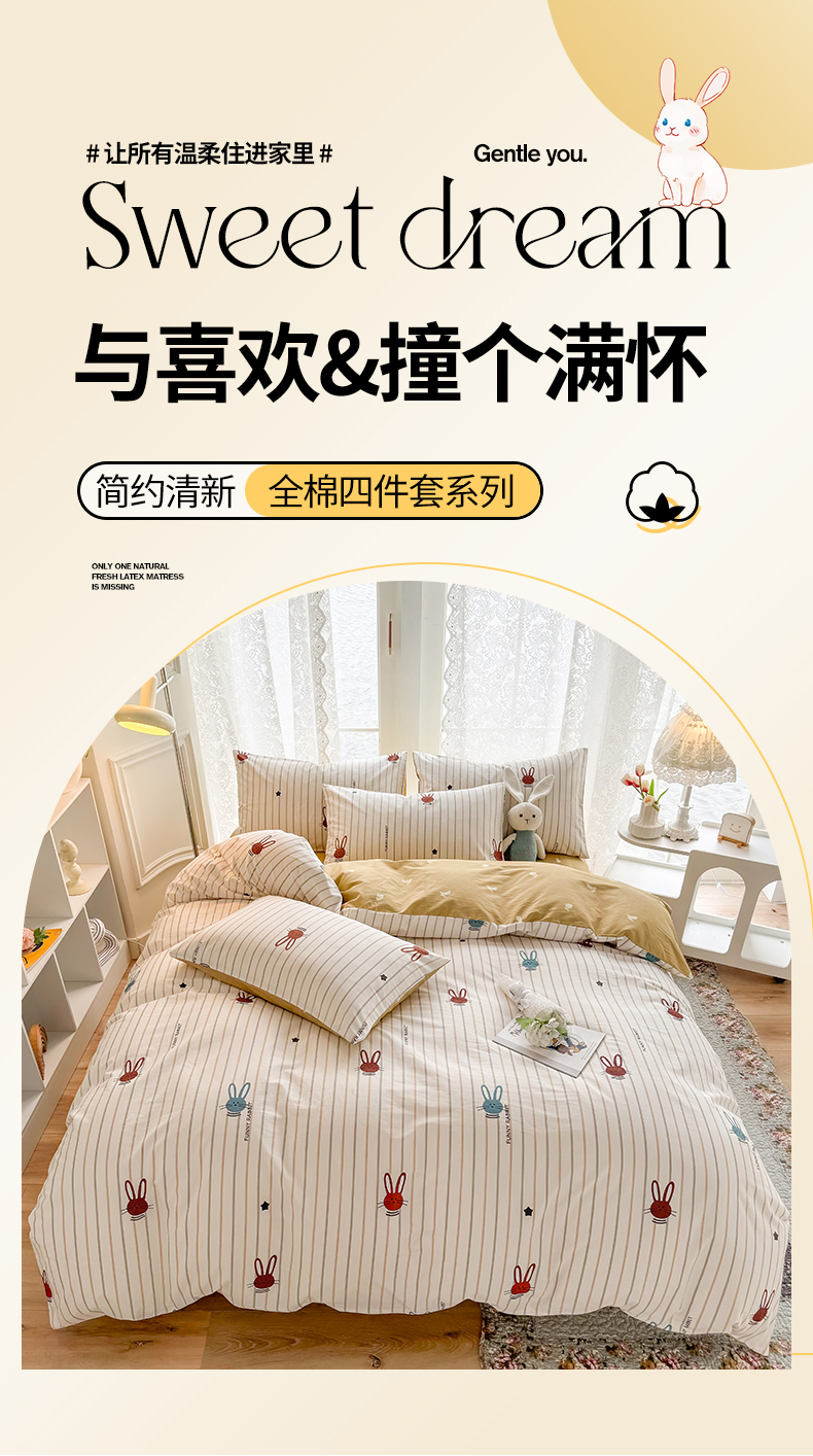 (总)梦洋家纺 2025春夏秋冬新款A类全棉四件套,爱心樱桃,桂花,蝴蝶结,花丛兔,蘑菇乐园,木槿花,水母花,司藤花,太阳花-水波纹,泰迪熊,向日葵,小棕熊-格子,星星兔-条纹,樱桃-点点,樱桃园,虞美人,玉兔园,郁金香