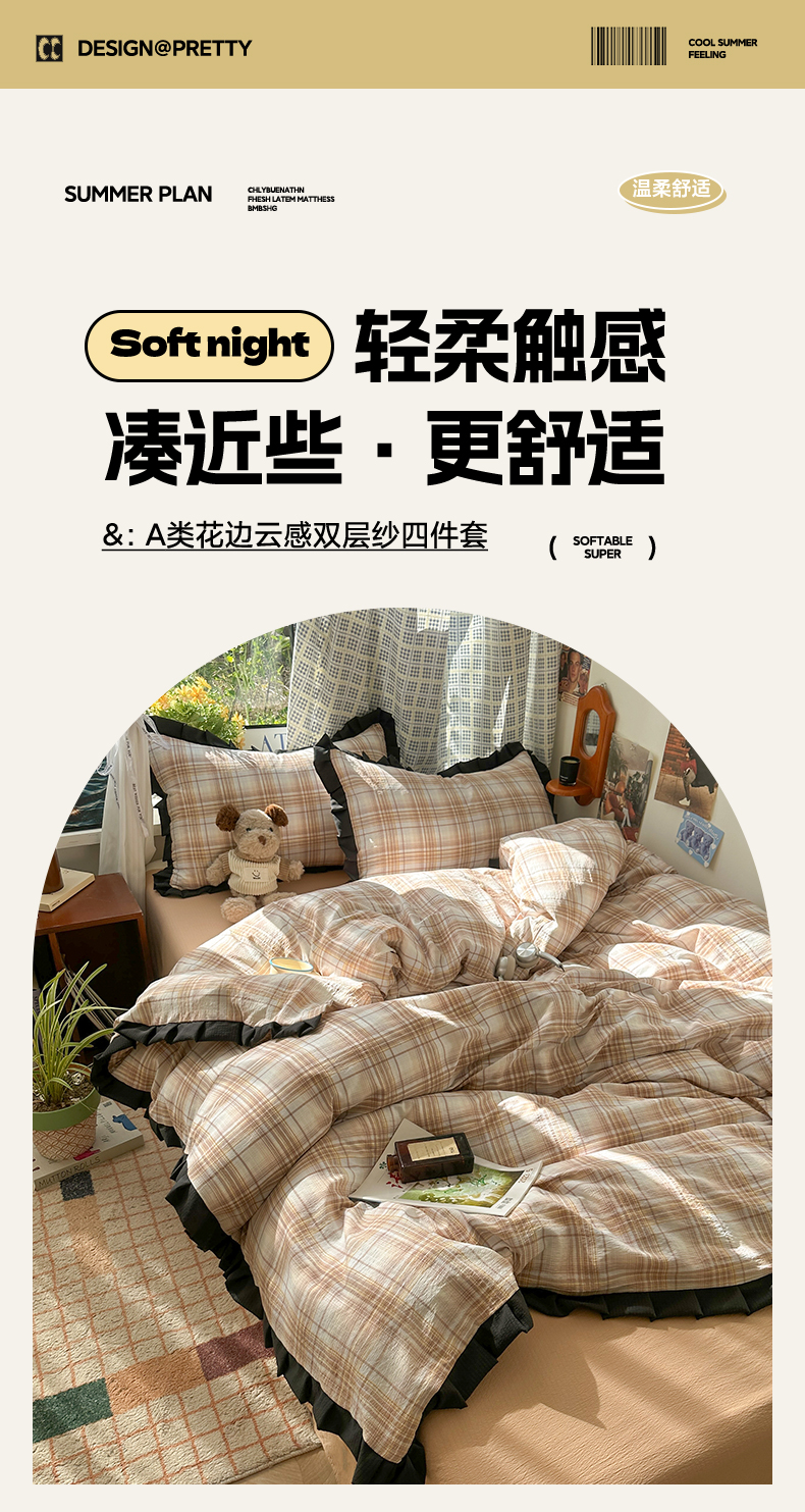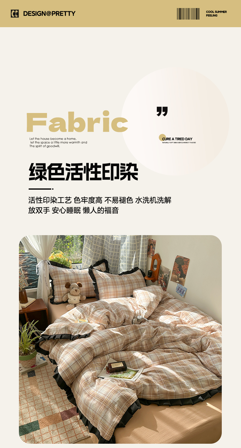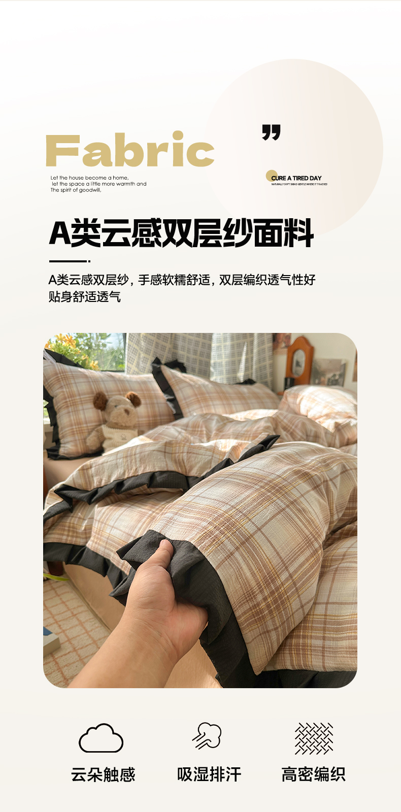 当前位置: 91家纺网 > 商品网购 > 床品套件 > 四件套 > 其它四件套 > 韩巢家纺 2025新款双层纱经典复古风格子被套四件套直播热销款学生宿舍寝室床单三件套 鹿灵格纹【黑皱皱花边款】