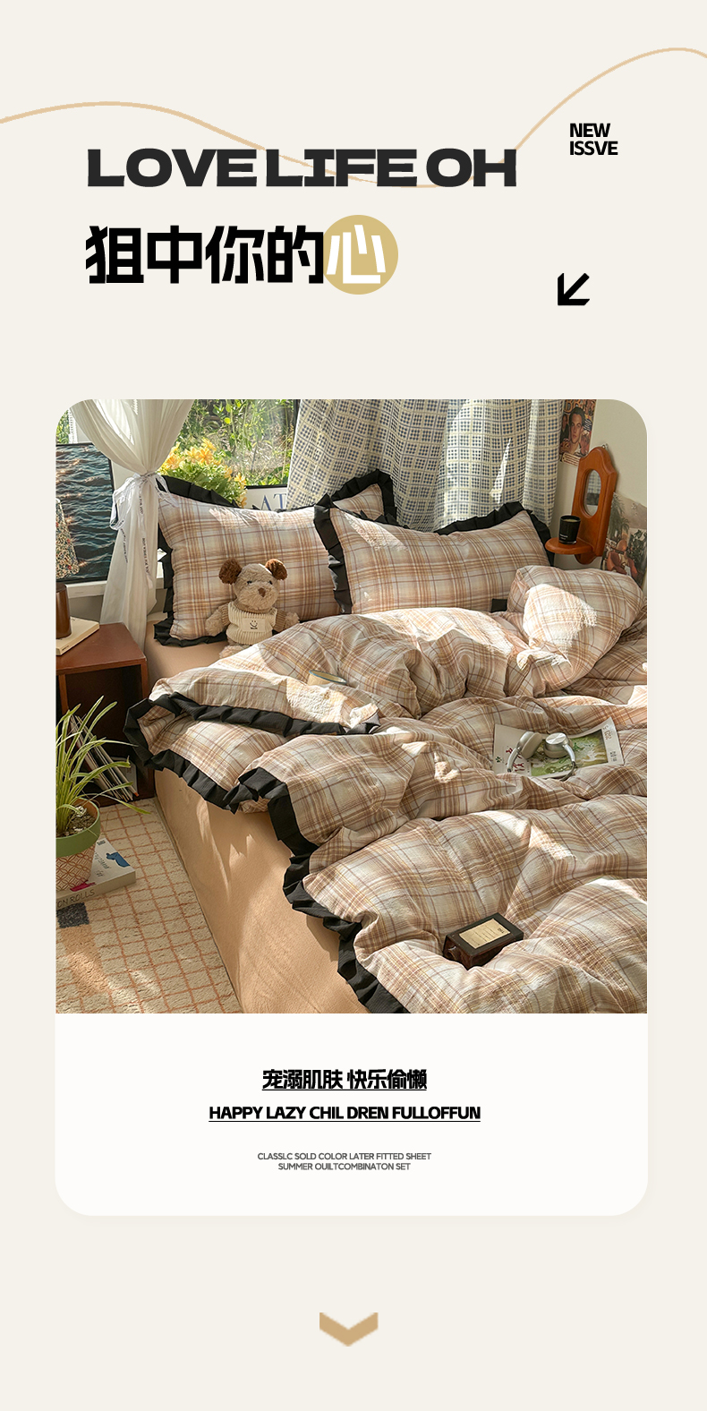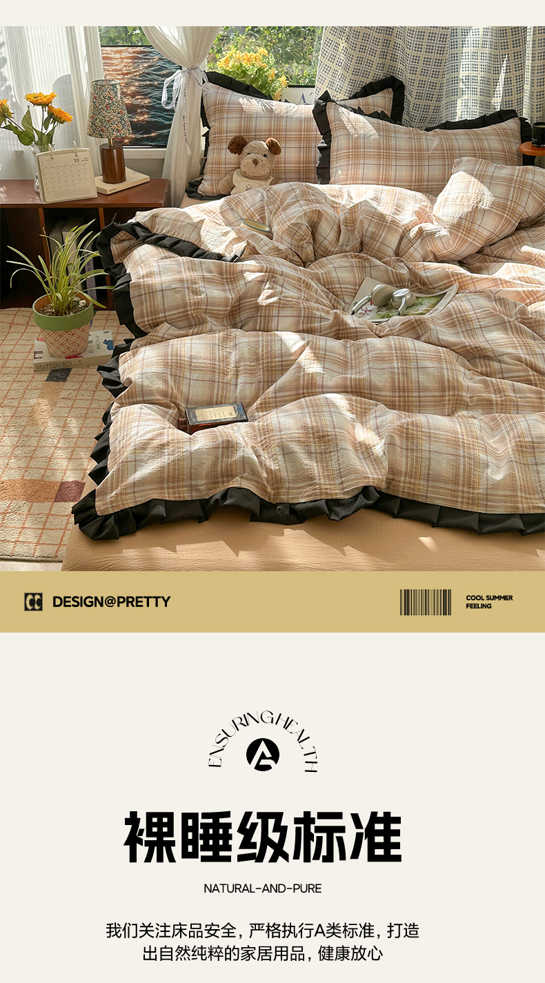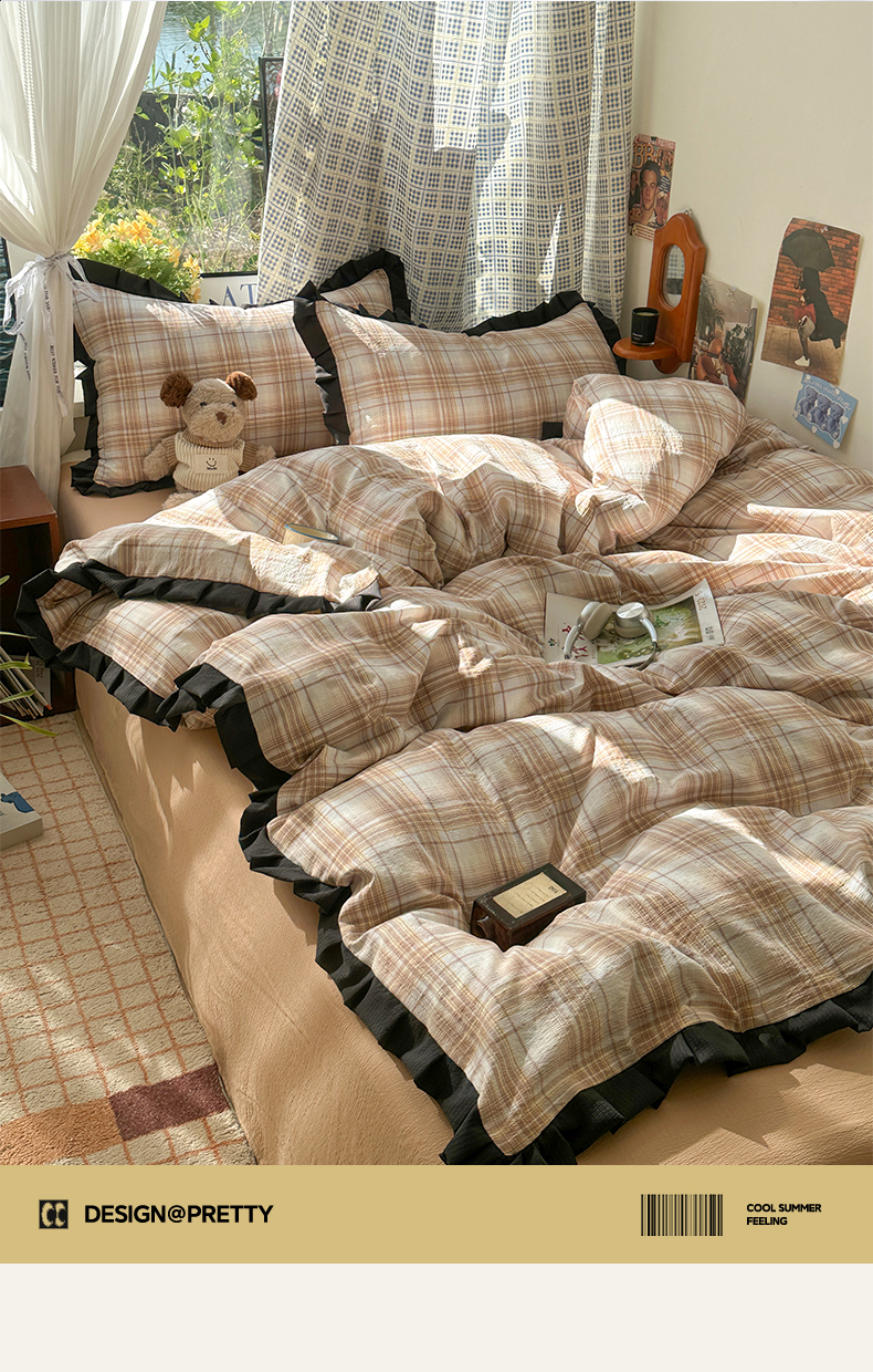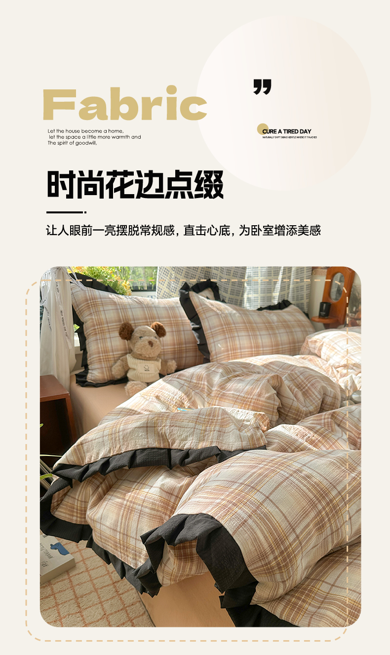 当前位置: 91家纺网 > 商品网购 > 床品套件 > 四件套 > 其它四件套 > 韩巢家纺 2025新款双层纱经典复古风格子被套四件套直播热销款学生宿舍寝室床单三件套 鹿灵格纹【黑皱皱花边款】
