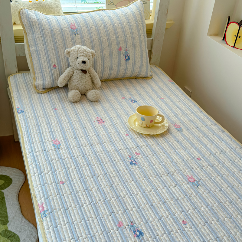 金丝鸟家纺 2025新款全棉双层纱软床垫床褥床盖 甜豆兔兔-蓝