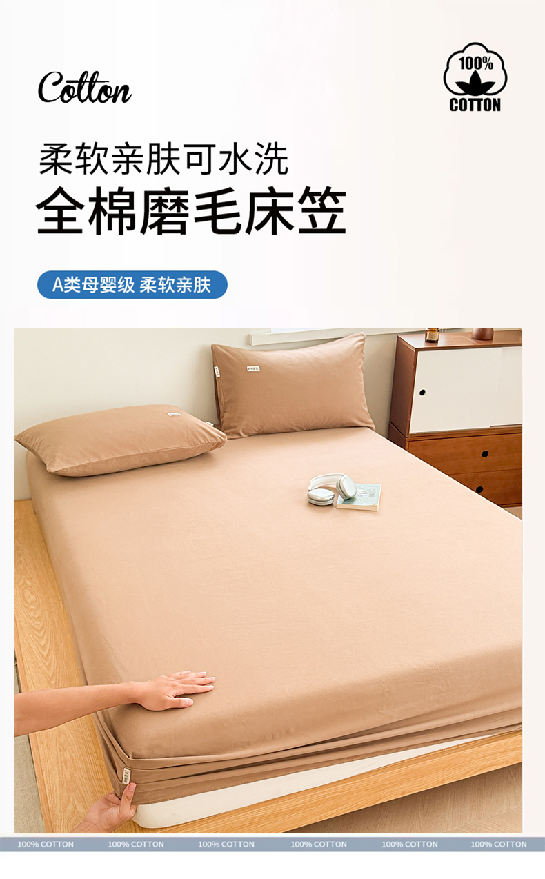 商品名称:(总)眠博士 2025新款A类纯色全棉磨毛大床床笠三件套