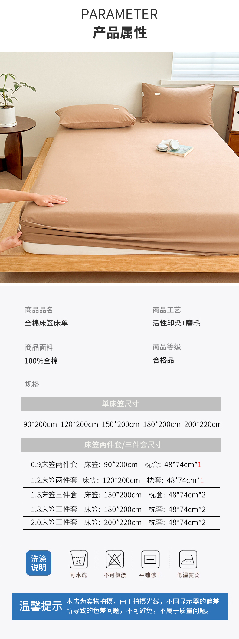 眠博士 2025新款简约纯色纯棉40支单床笠系列 40支床笠-咖啡色,40支床笠-咖啡色