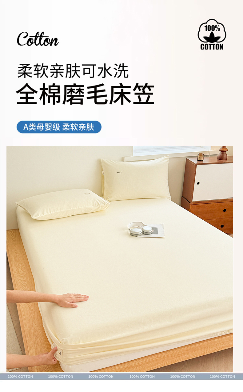 • 91家纺网 家纺一手货源 找家纺 眠博士 2025新款A类纯色全棉磨毛大床床笠三件套 磨毛床笠-陶瓷奶白