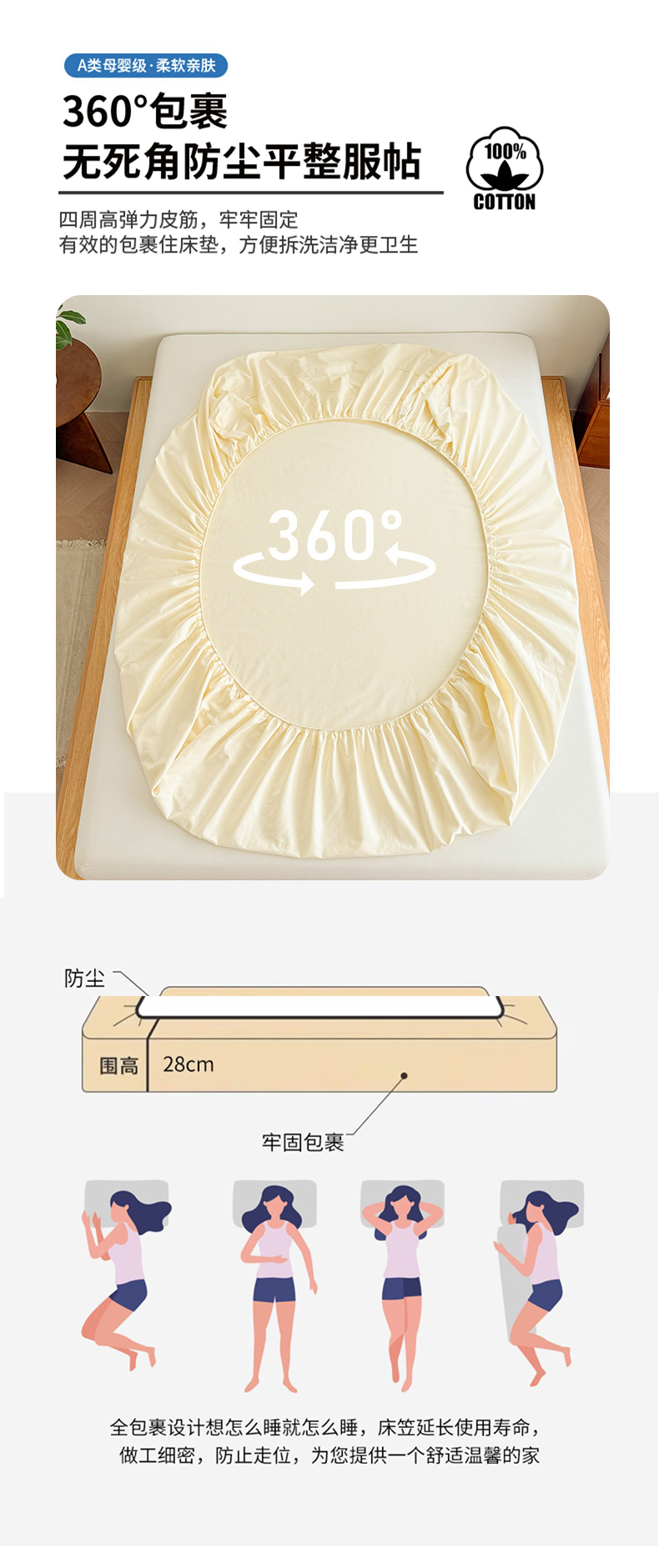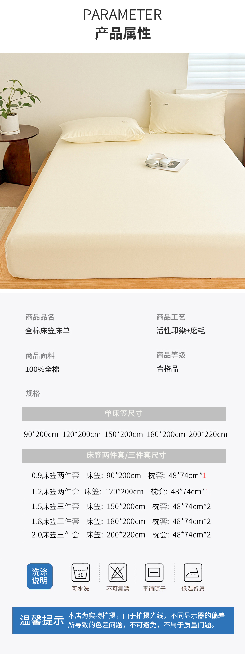 当前位置: 91家纺网 > 商品网购 > 床上用品 > 床笠 > 眠博士 2025新款A类纯色全棉磨毛大床床笠三件套 磨毛床笠-陶瓷奶白