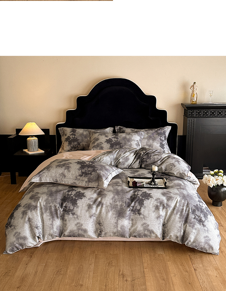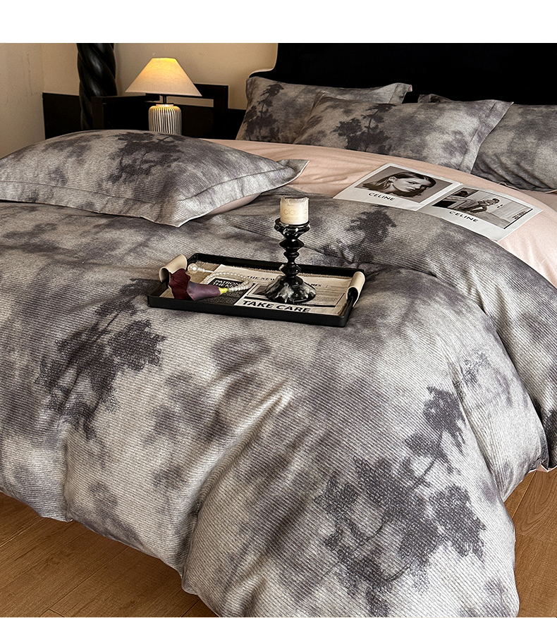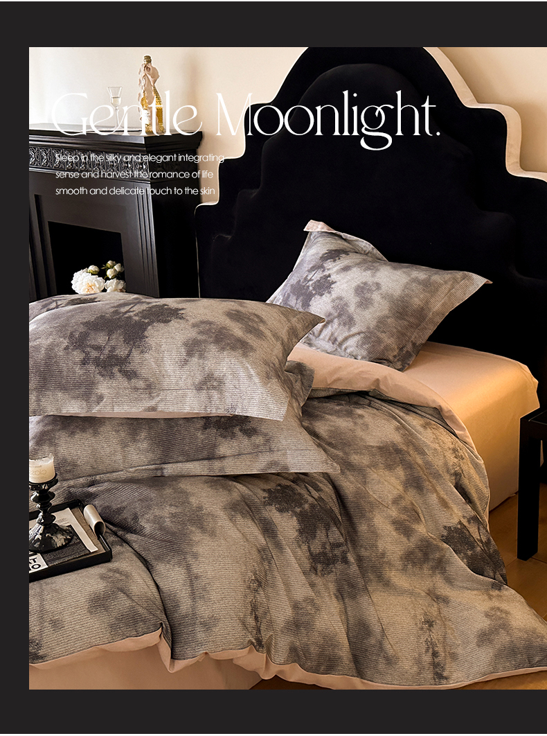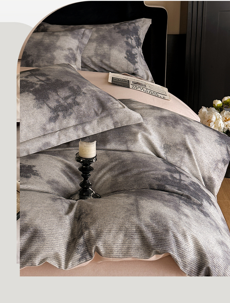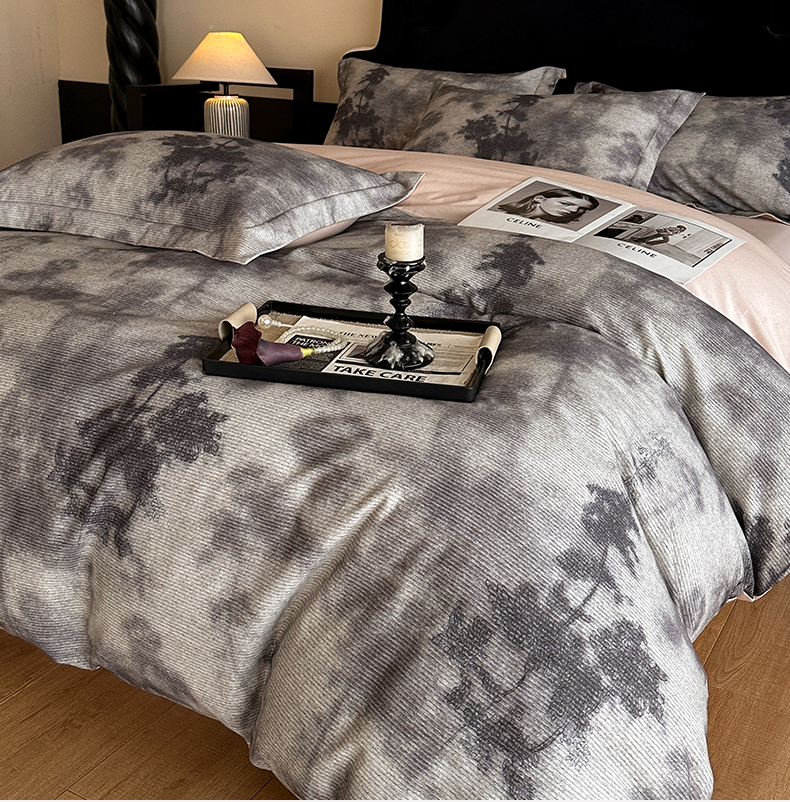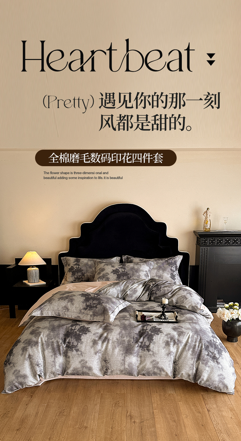 羚羊语家纺 2025新款A类全棉生态磨毛100棉数码印花四件套活性磨毛轻奢美拉德系简约花卉床单床笠三件套 影织纱