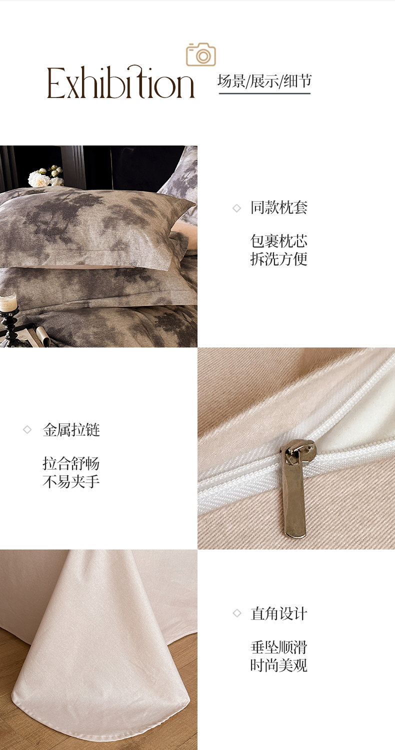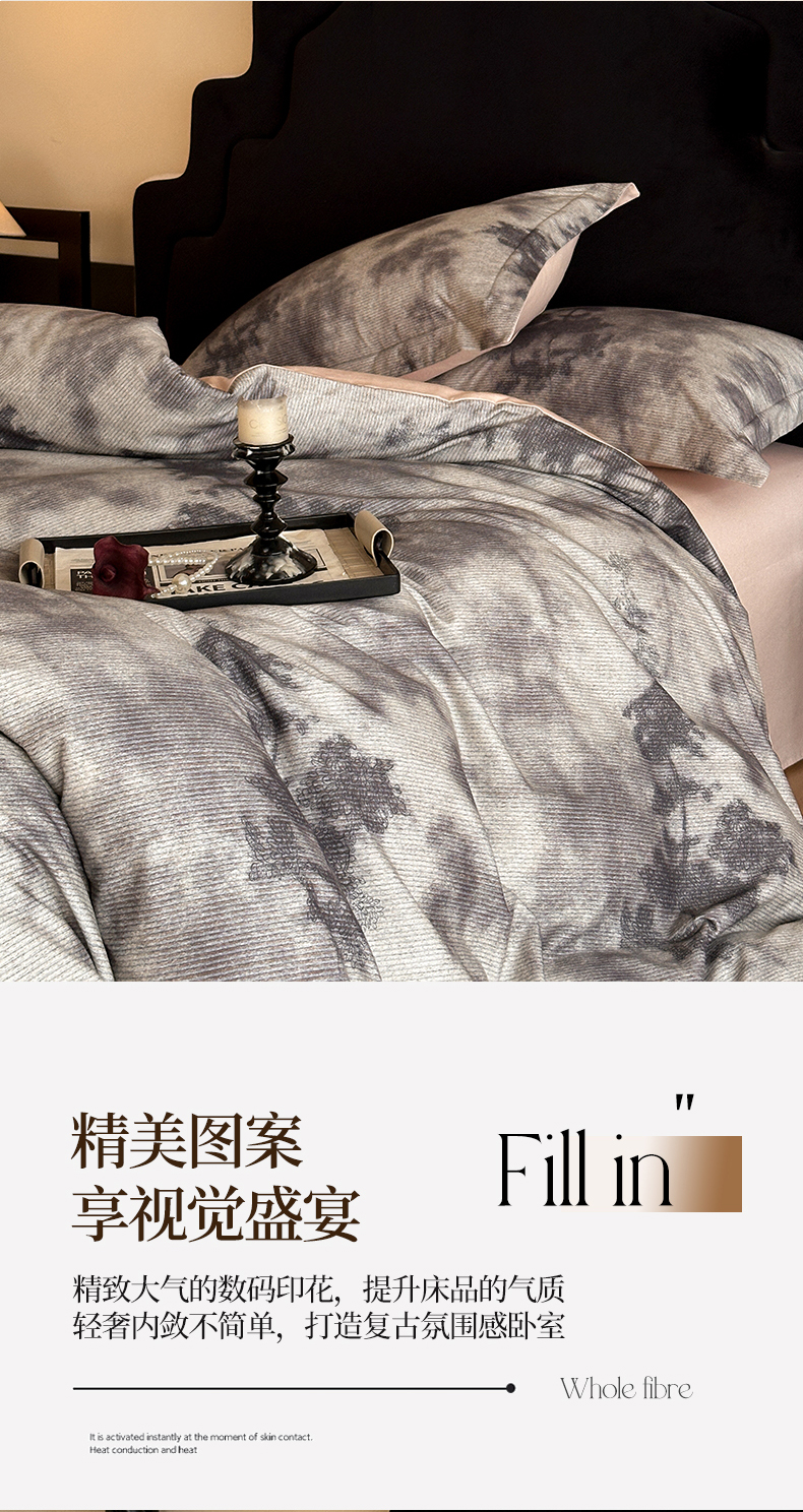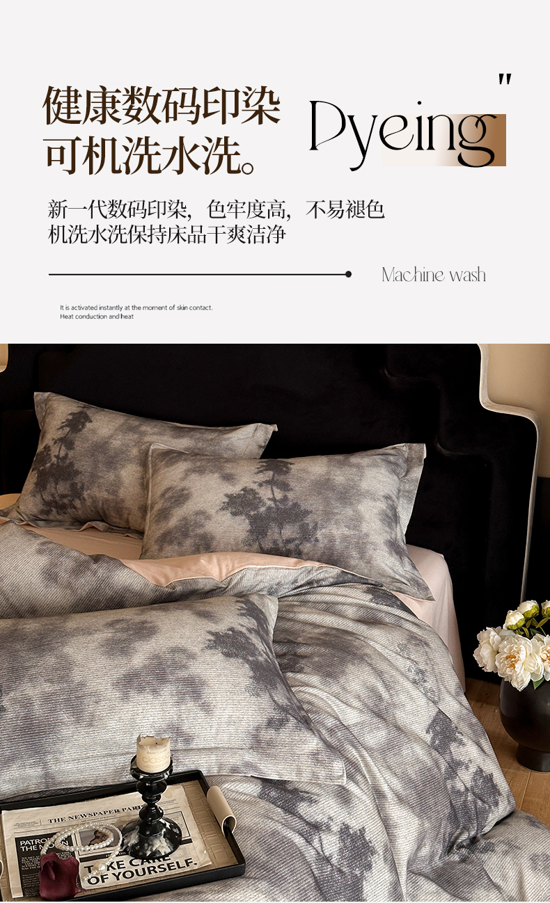 (总)羚羊语家纺 2025新款A类全棉生态磨毛100棉数码印花四件套活性磨毛轻奢美拉德系简约花卉床单床笠三件套,江山里,帛书影,影织纱,釉色染,印象派,风语喃,浮光跃,青瓷韵