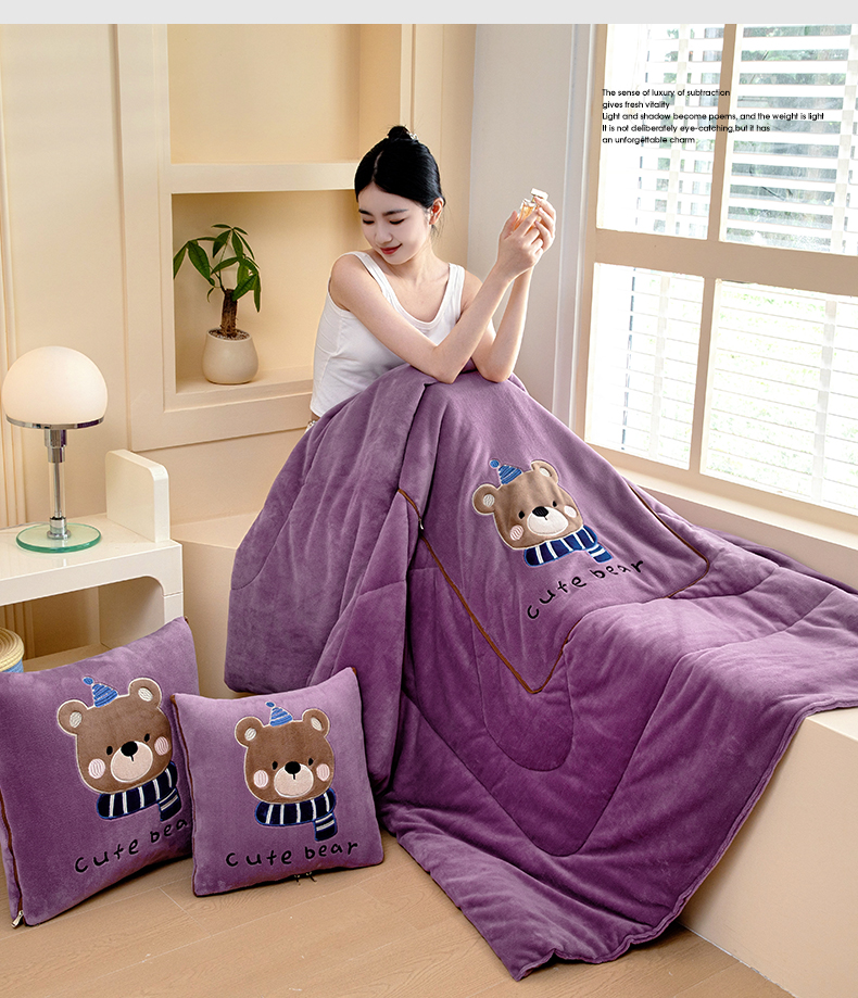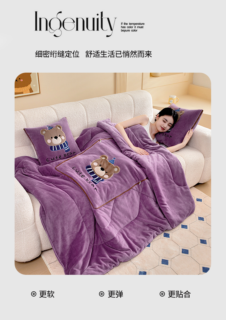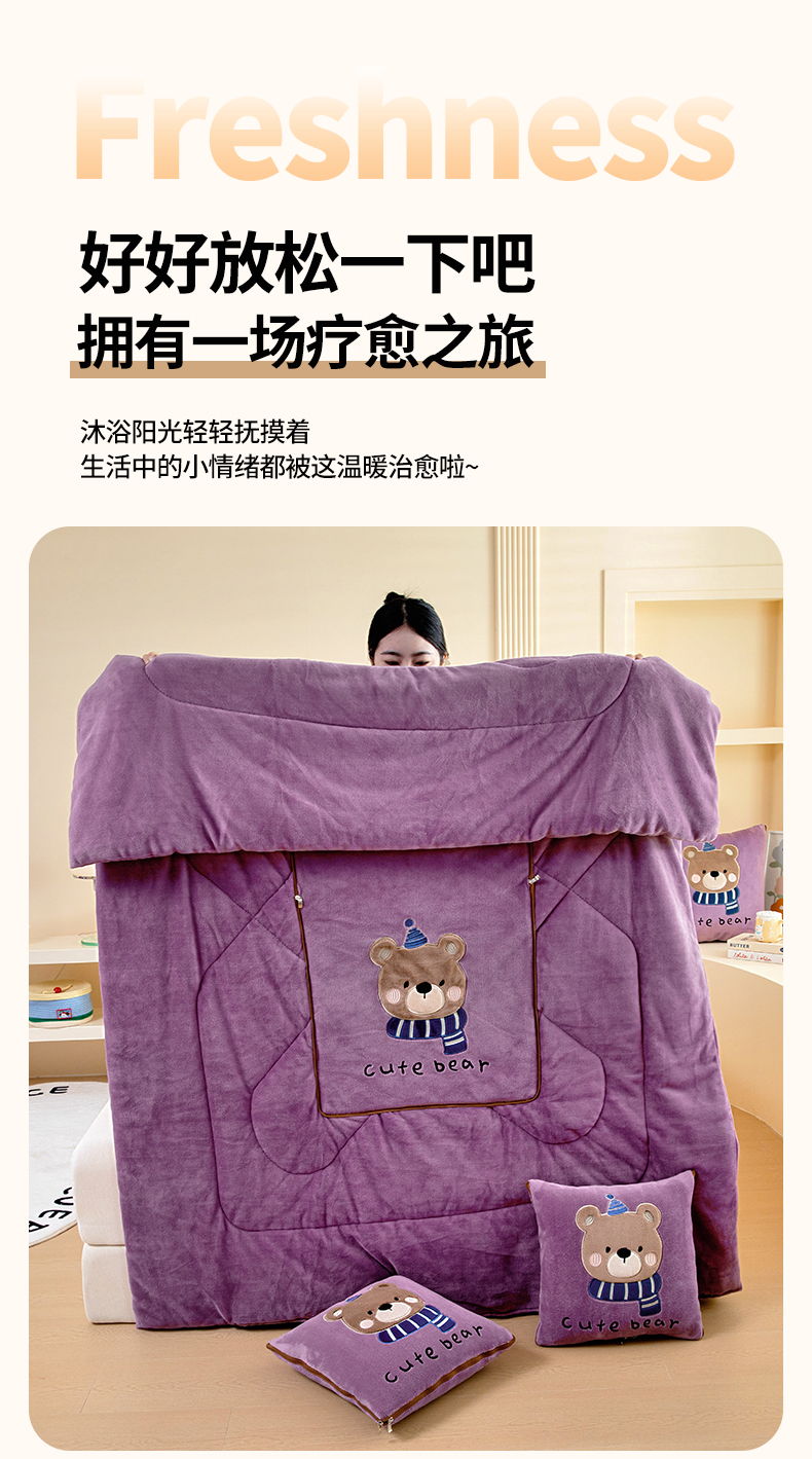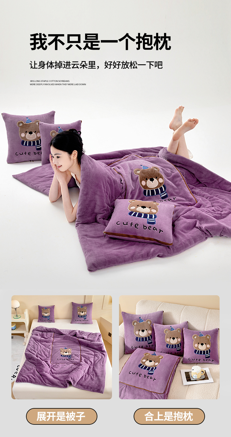 阳光依佰抱枕被 2025秋冬新款牛奶绒多功能抱枕被系列-抱抱熊 抱抱熊---罗兰紫