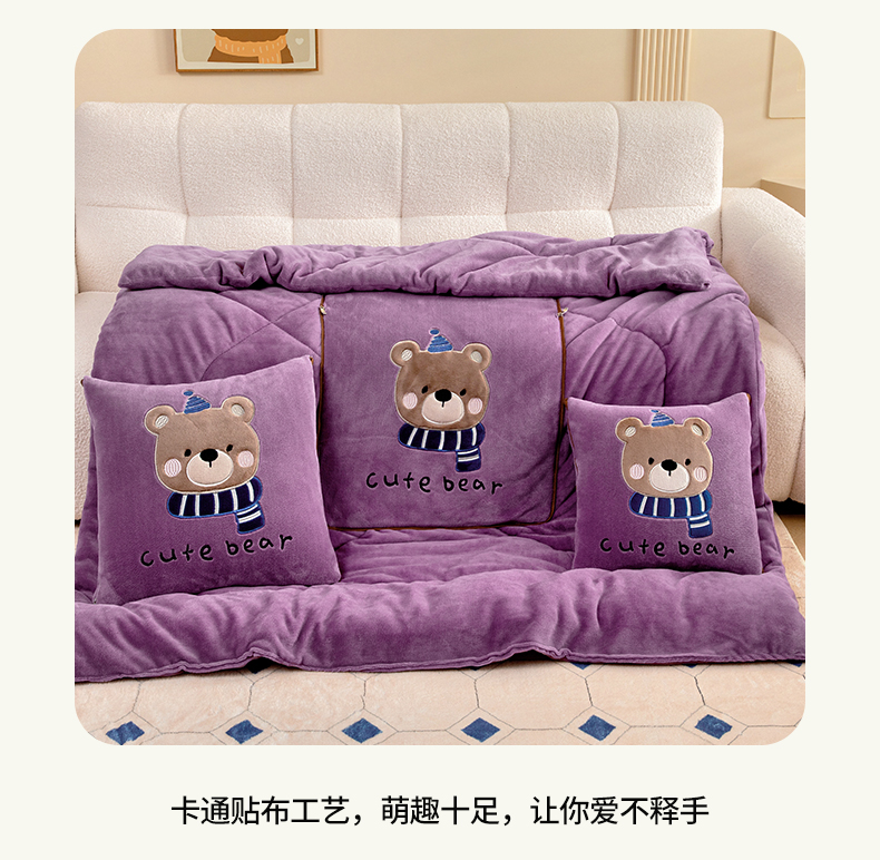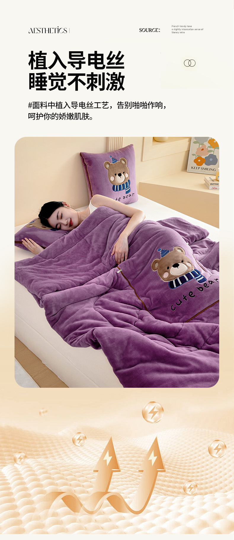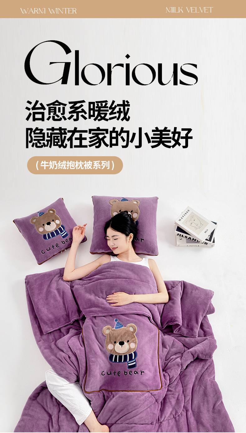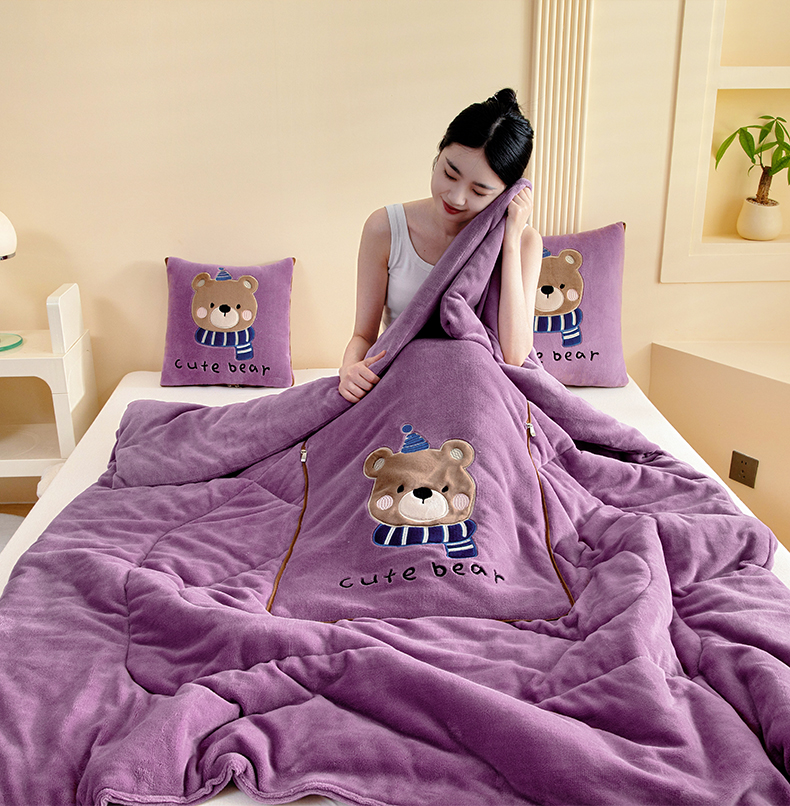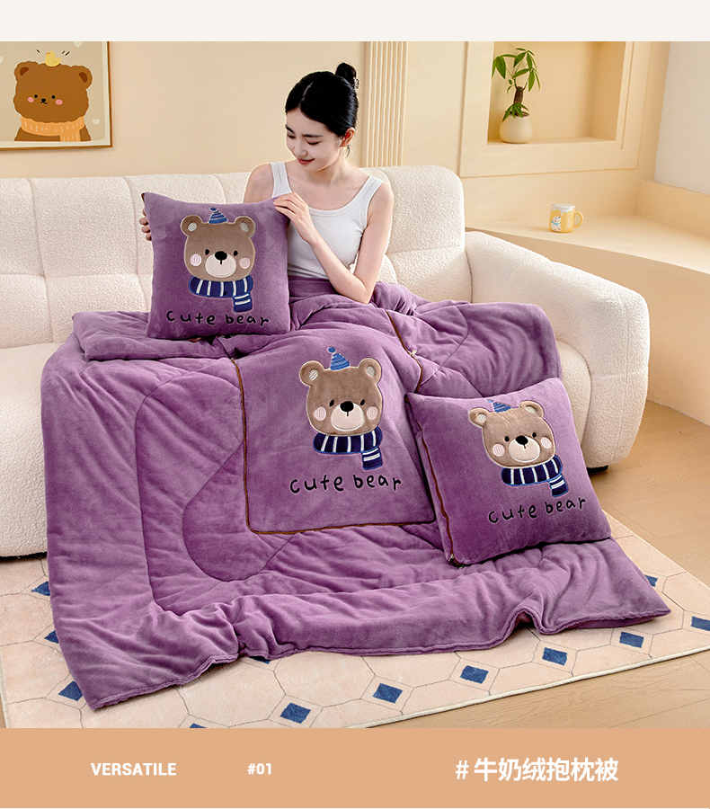 阳光依佰抱枕被 2025秋冬新款牛奶绒多功能抱枕被系列-抱抱熊 抱抱熊---罗兰紫