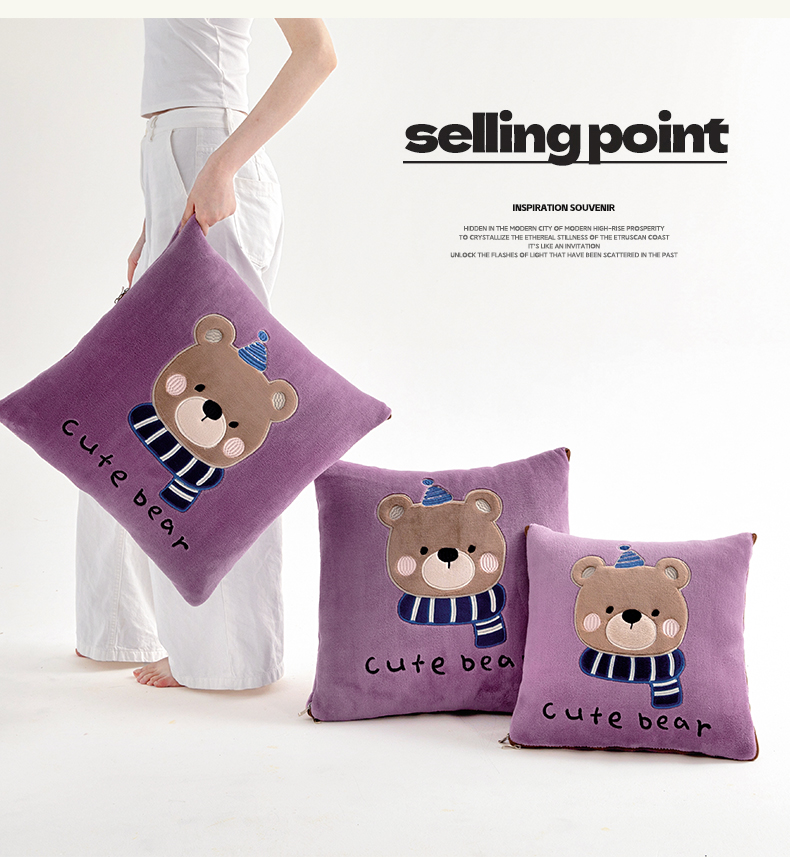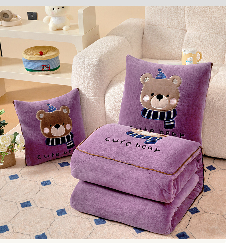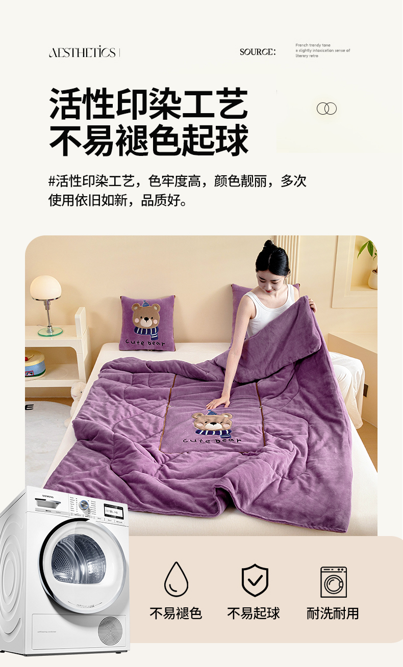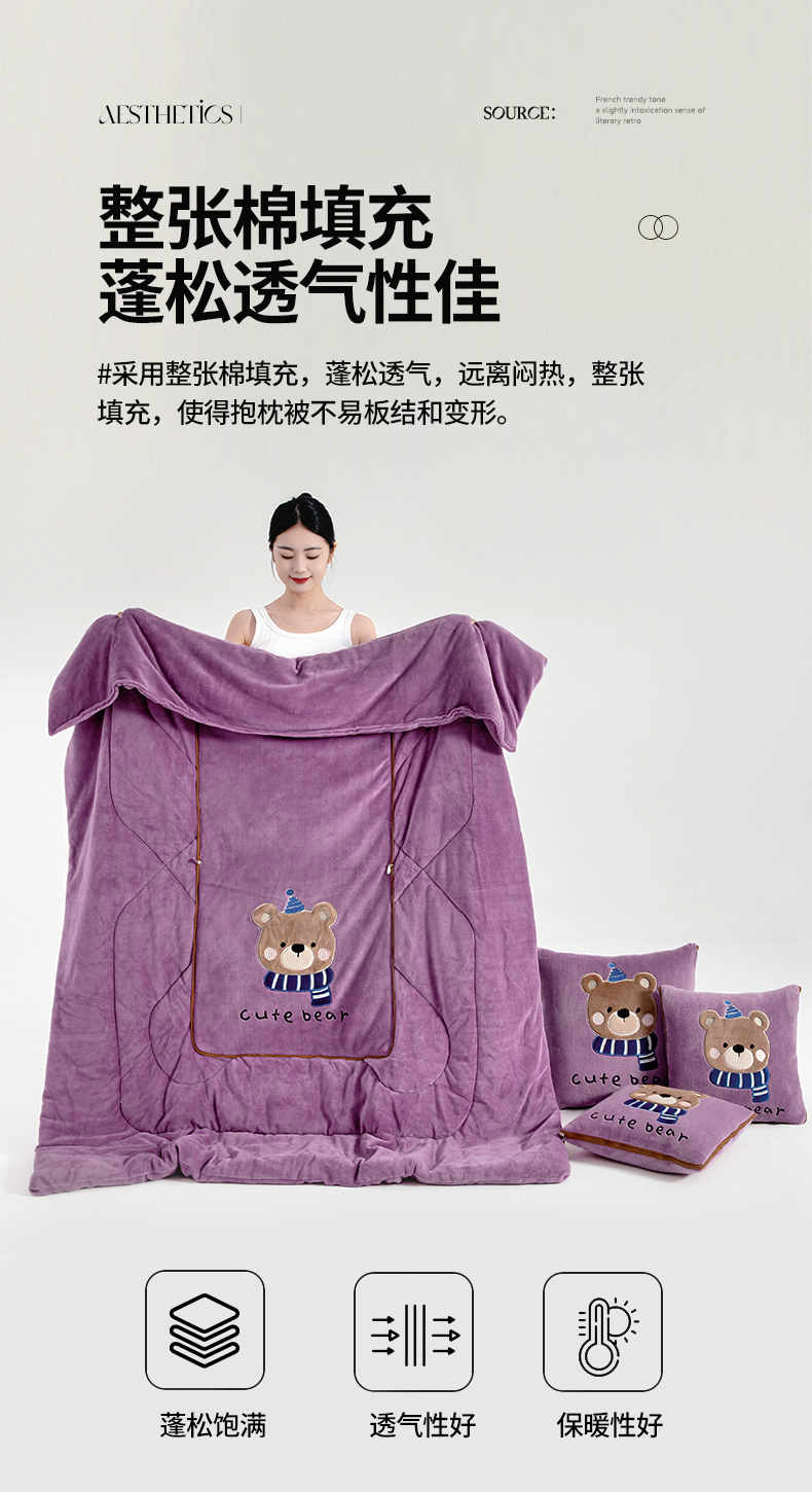 商品名称:阳光依佰抱枕被 2025秋冬新款牛奶绒多功能抱枕被系列-抱抱熊 抱抱熊---罗兰紫