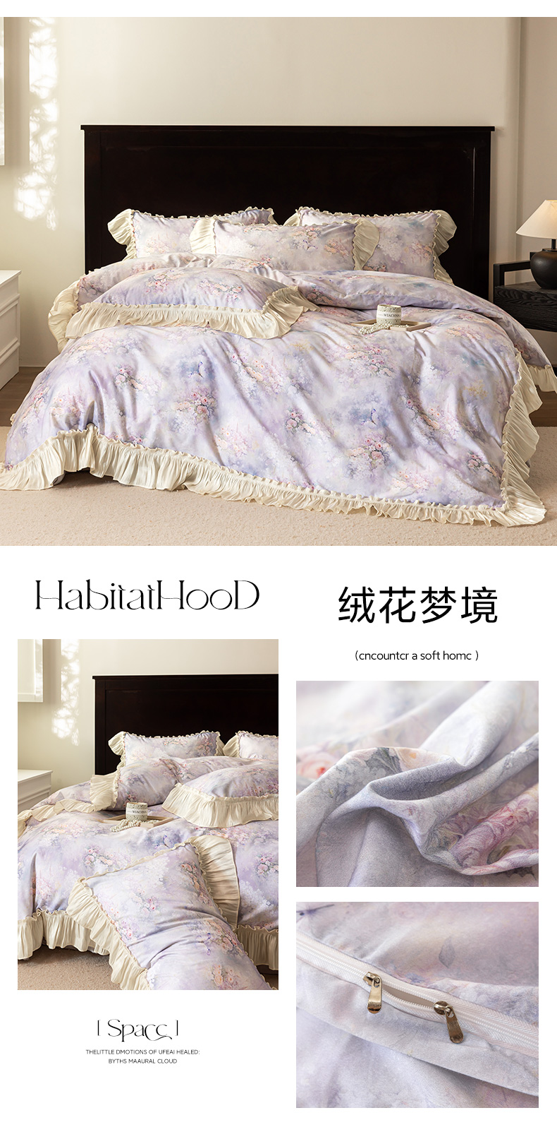 迷尚家居 2025新款全棉60支磨毛花边款四件套 绒花梦境