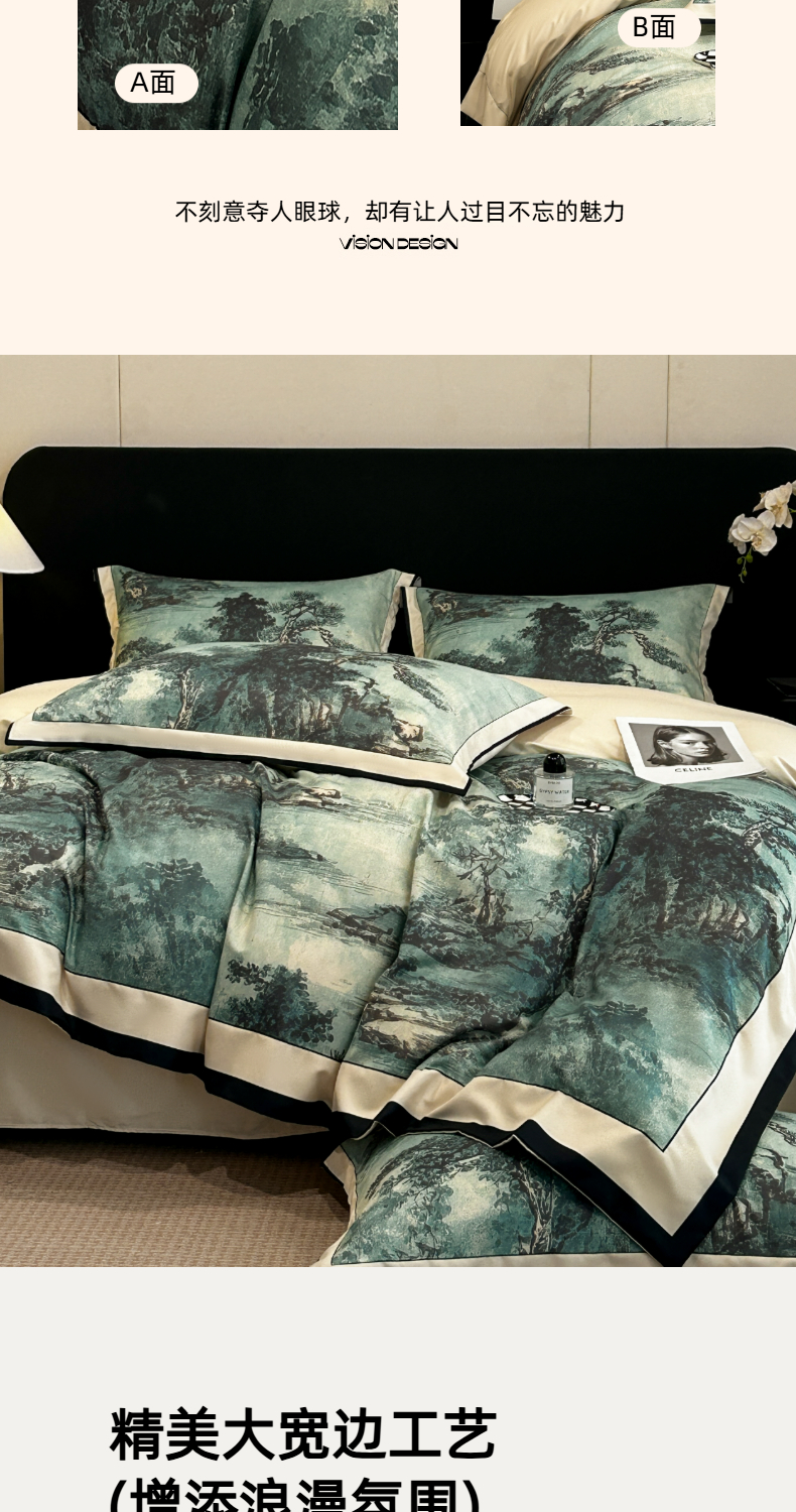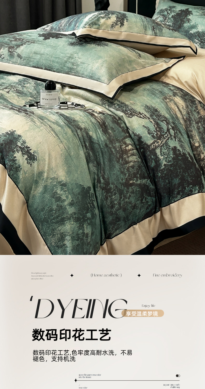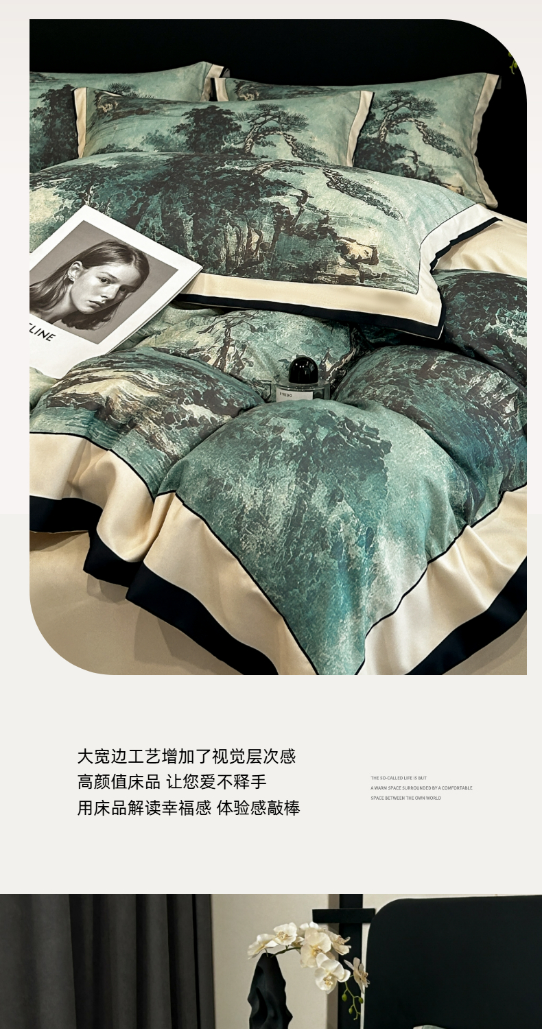 (总)色鬼布艺高端家居主号 2025新款大宽边亲肤棉四件套,阑梦,暮染,年轮,如画,枝语花繁