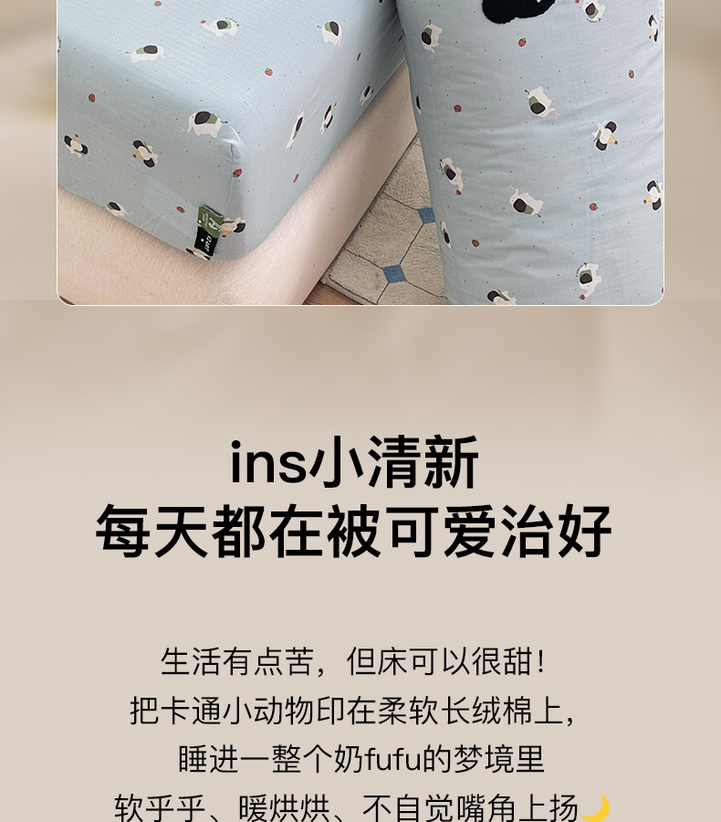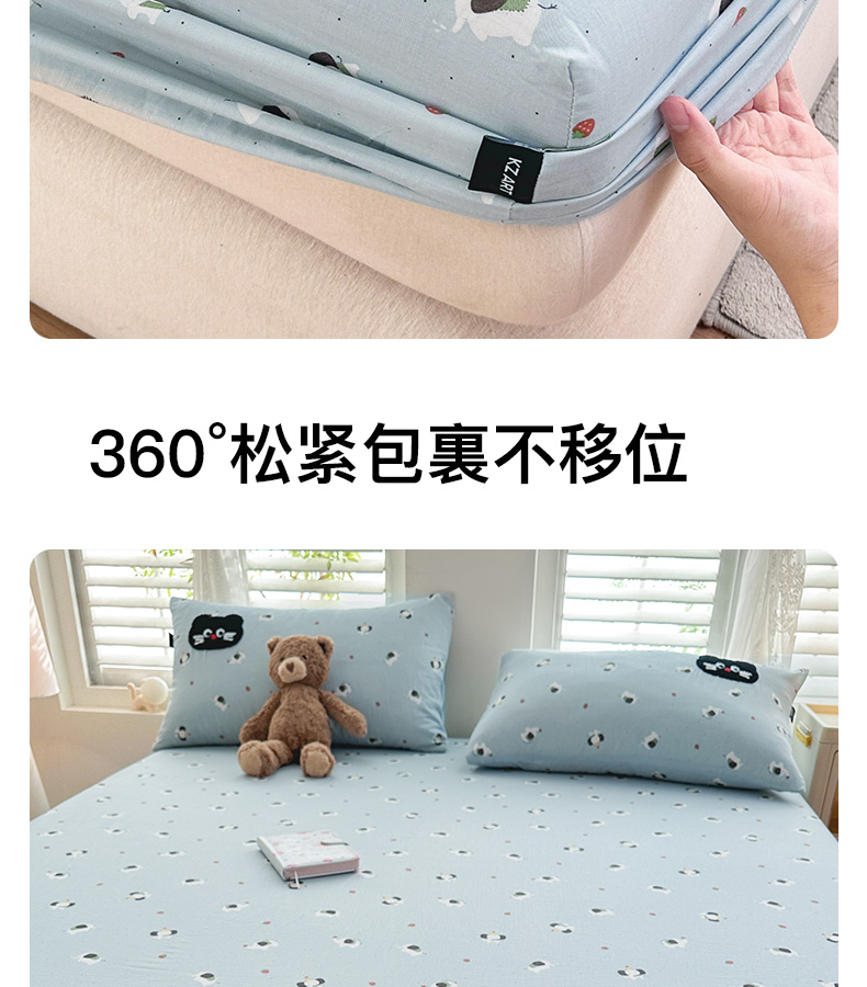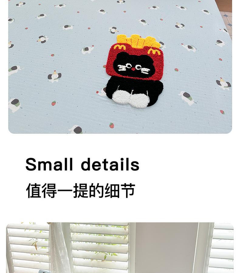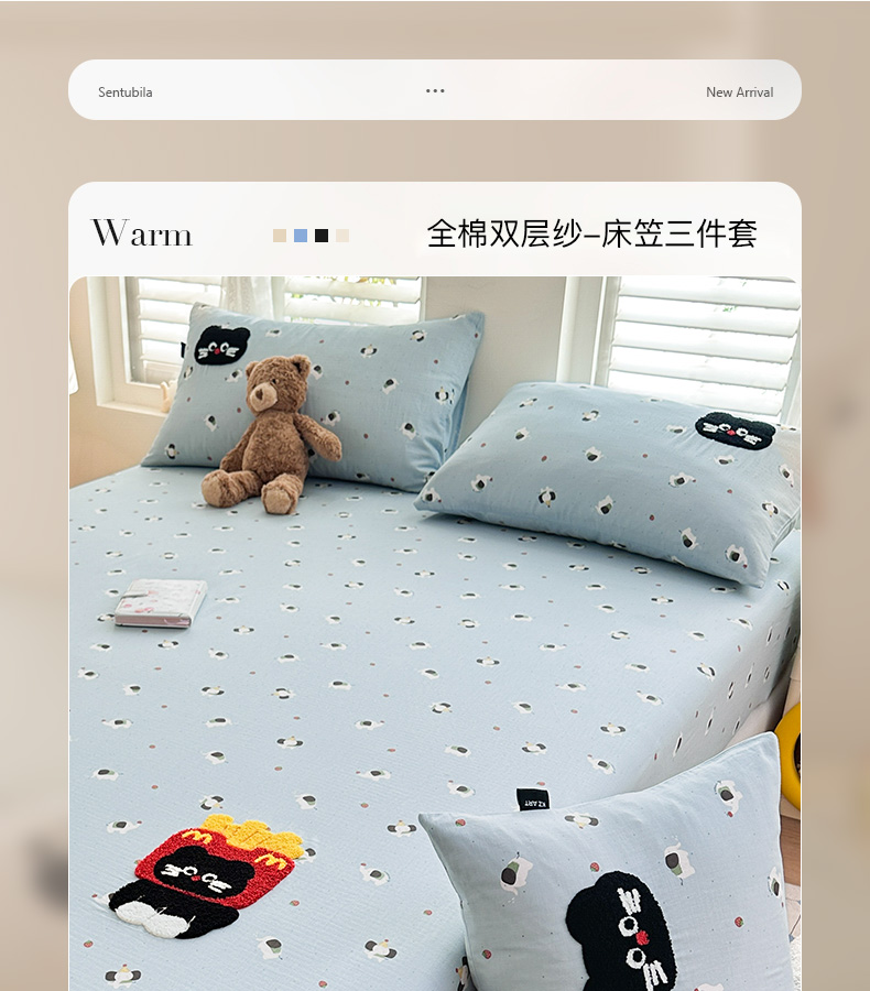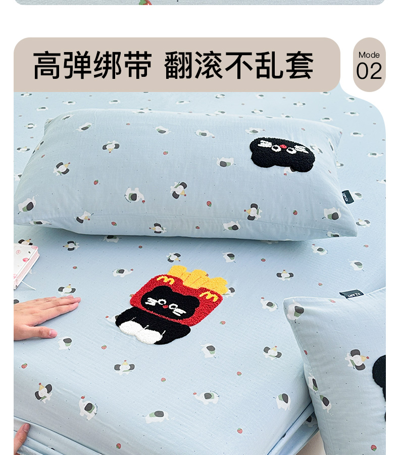 • 91家纺网 家纺一手货源 找家纺 卡姿家纺 2025秋冬全棉双层纱-床笠三件套 床笠-猫咪薯条