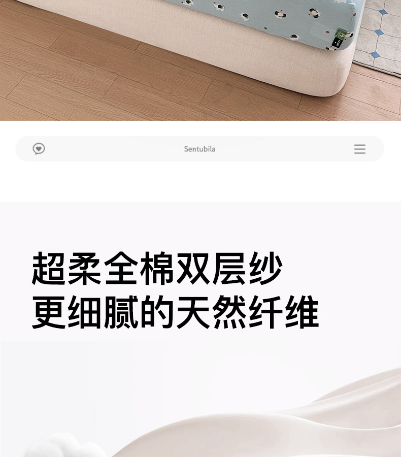 (总)卡姿家纺 2026春夏全棉双层纱床盖式床笠三件套,彩球小猫,圣诞树,糖果小熊,小狗贝塔,小狗喜乐,小狗元宝