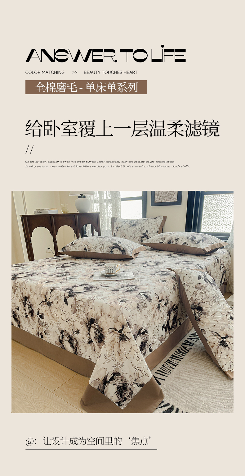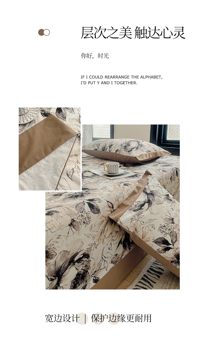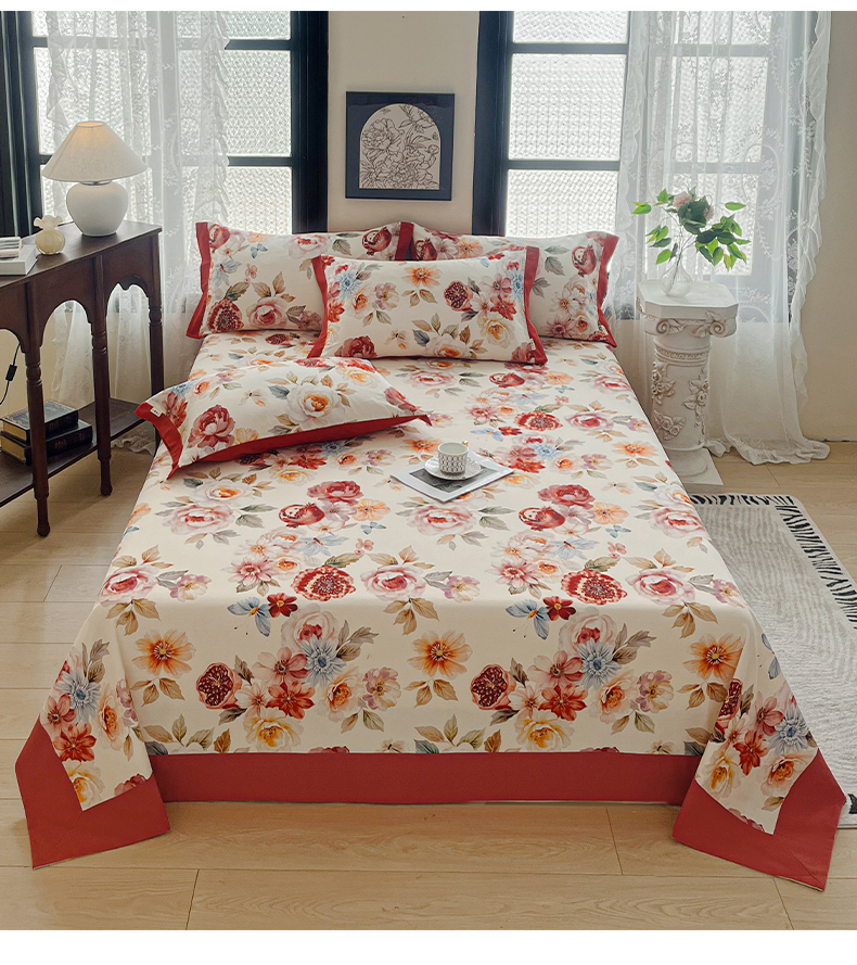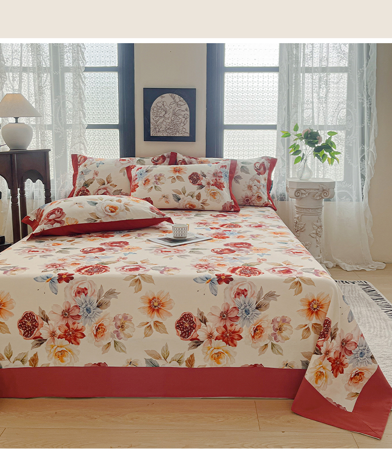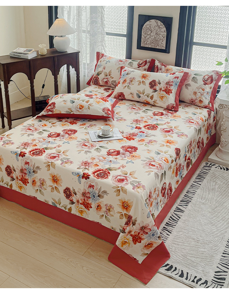 (总)慕梵家居2025新款A类100%全棉磨毛包边床单纯棉宽边单床单,繁花藤叙,红色玫瑰,暮秋鎏金,石榴花红,石榴花灰,硕果累累,甜梦茶语