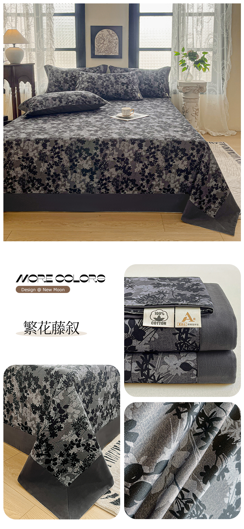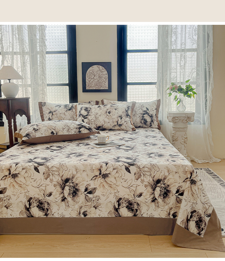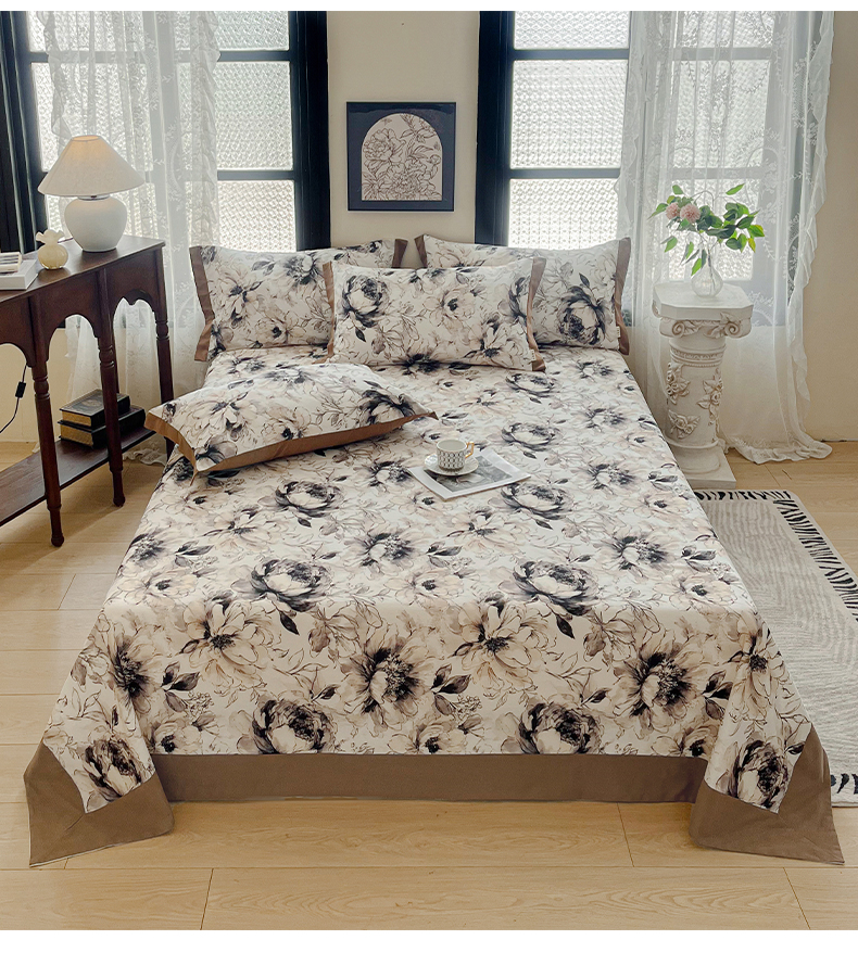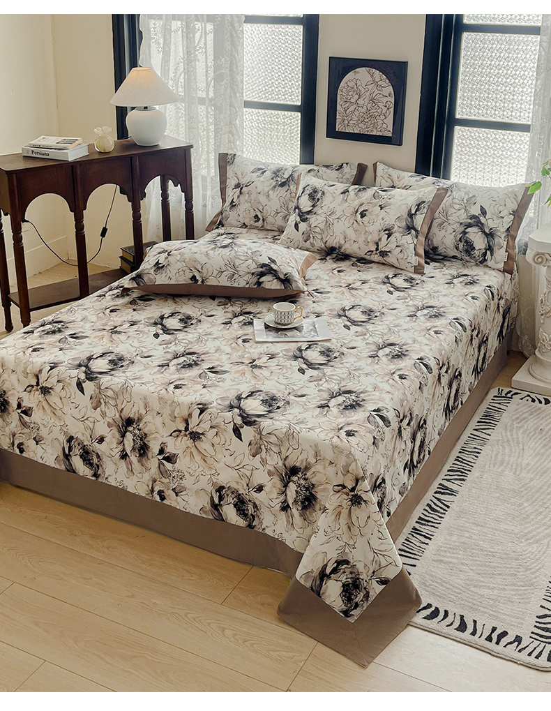 (总)慕梵家居2025新款A类100%全棉磨毛包边床单纯棉宽边单床单,繁花藤叙,红色玫瑰,暮秋鎏金,石榴花红,石榴花灰,硕果累累,甜梦茶语