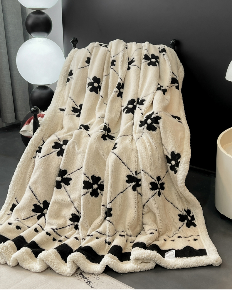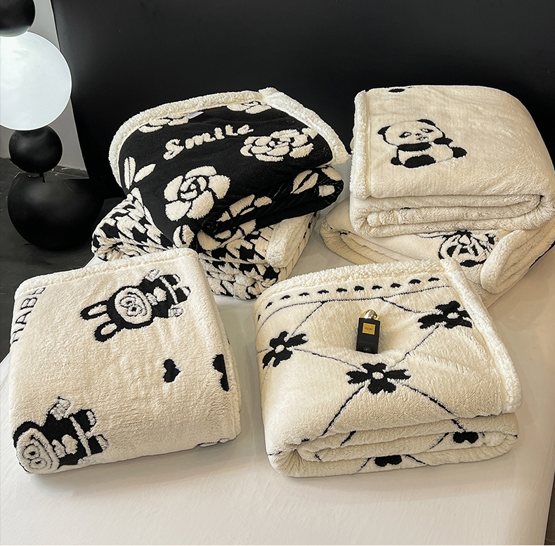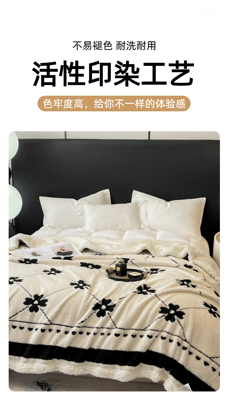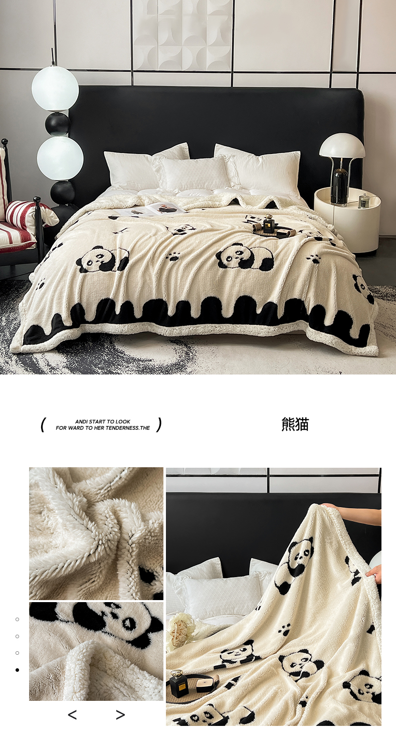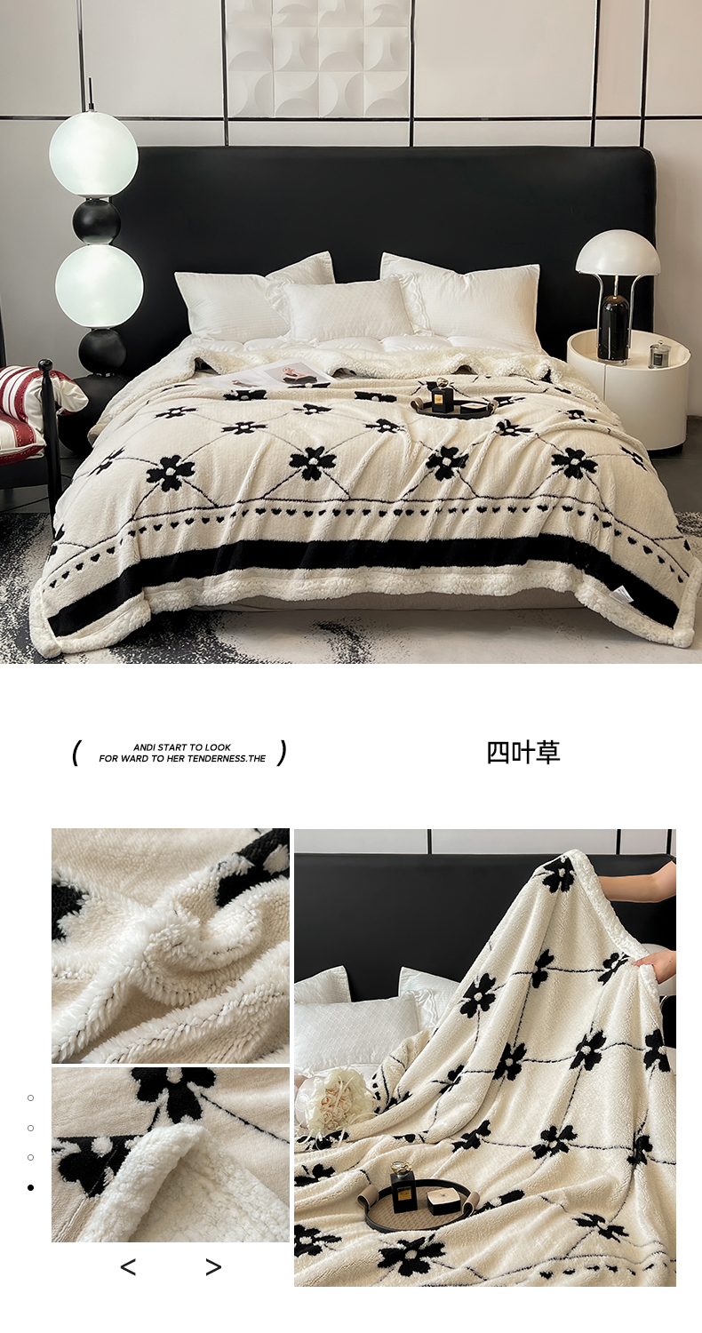 (总)美洲琳 2025新款羊羔绒复合简约现代休闲毯,布布,蝴蝶,千鸟格,山茶花,四叶草,熊猫