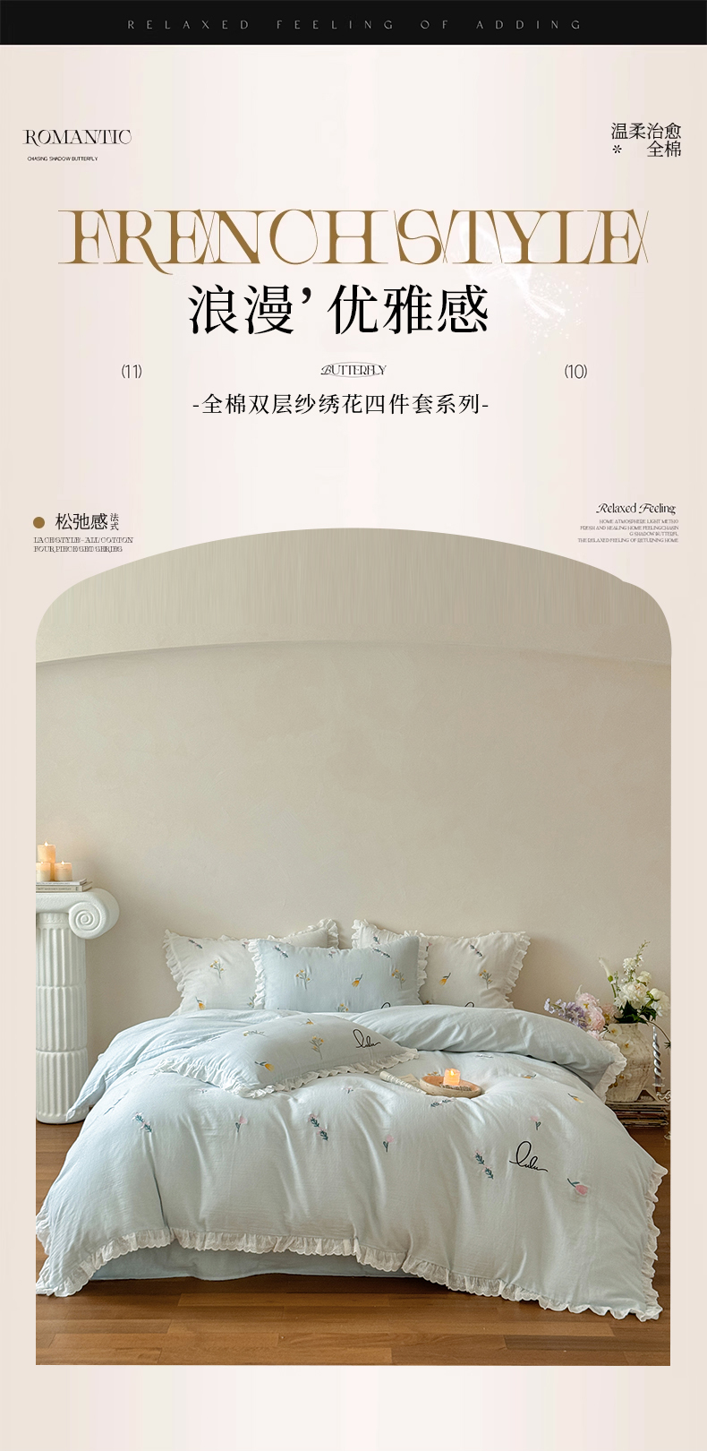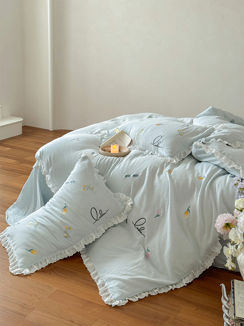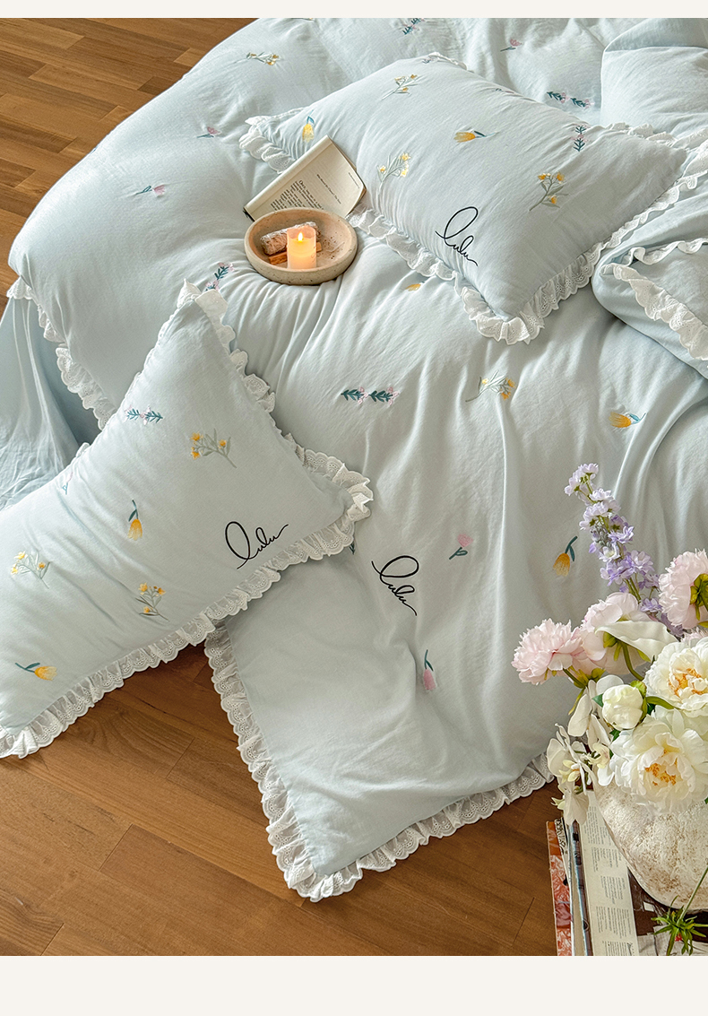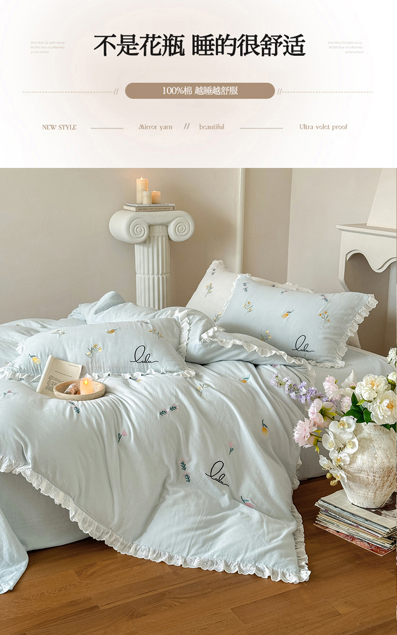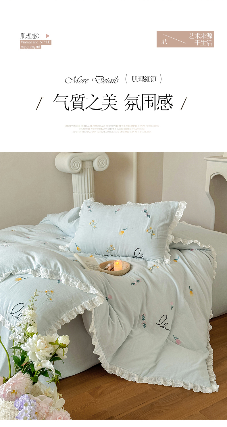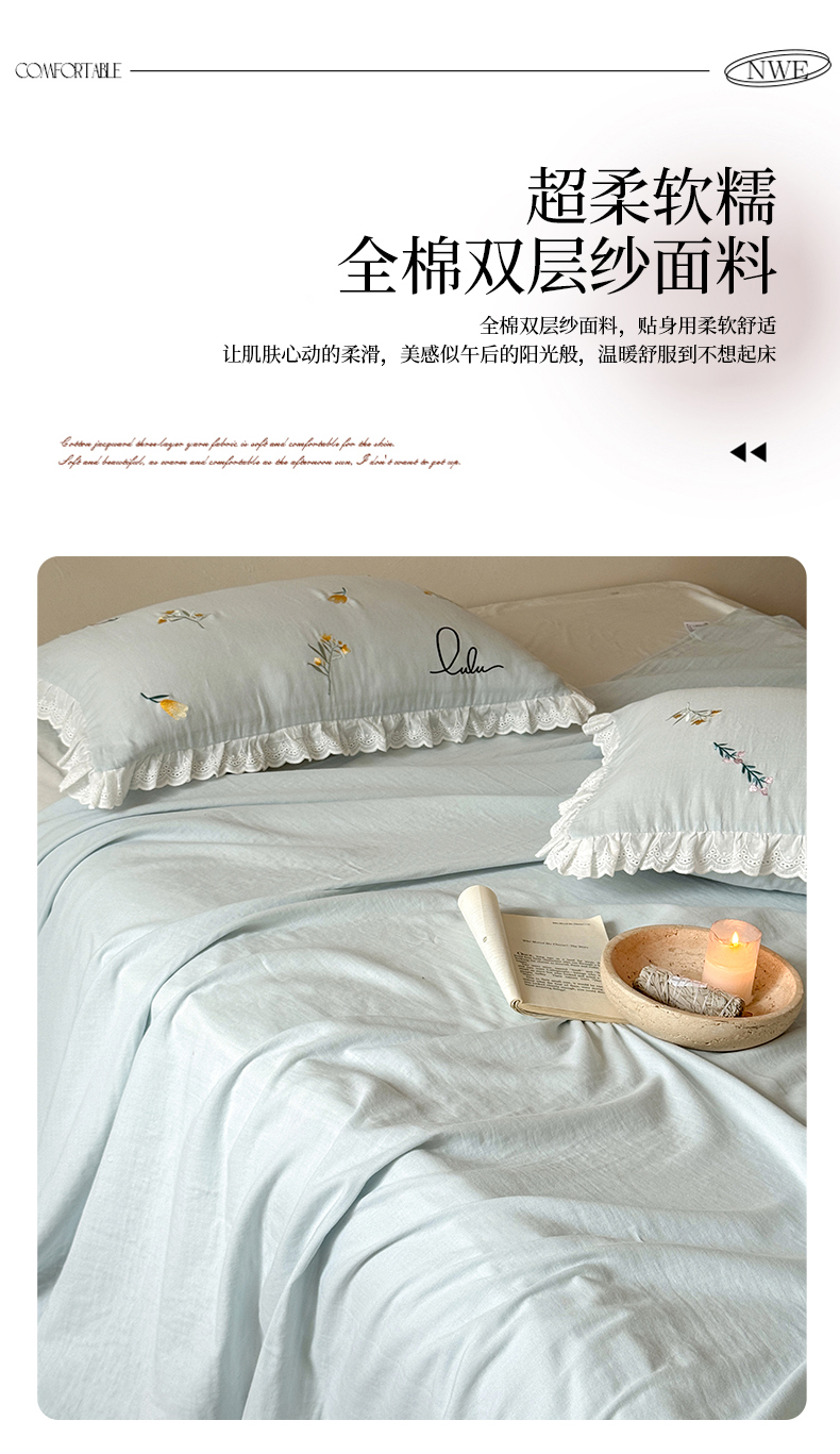 当前位置: 91家纺网 > 商品网购 > 床品套件 > 四件套 > 双层纱四件套 > FORTWO家纺原创设计(FOR TWO家纺) 2025新款40支全棉纯棉双层纱刺绣花边款四件套-小花园 小花园-兰