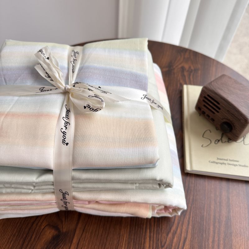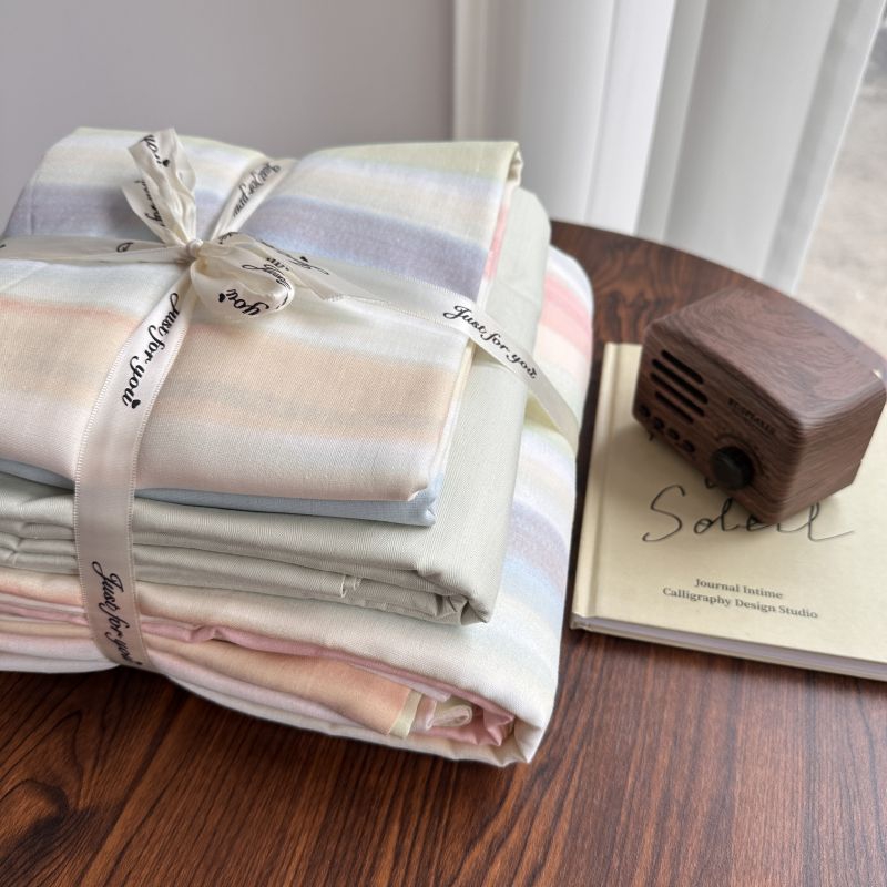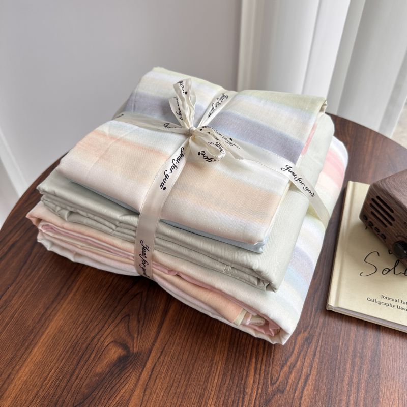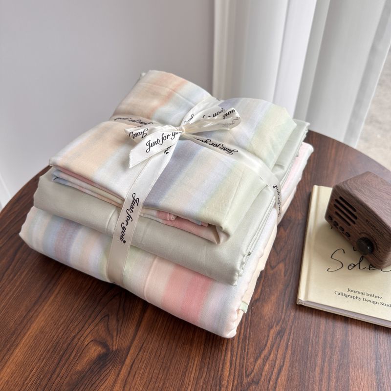 当前位置: 91家纺网 > 商品网购 > 床品套件 > 四件套 > 双层纱四件套 > 爱思佳 2024新款A类母婴全棉双层纱印花四件套直播热卖系列三 叠拍图 遇上彩虹