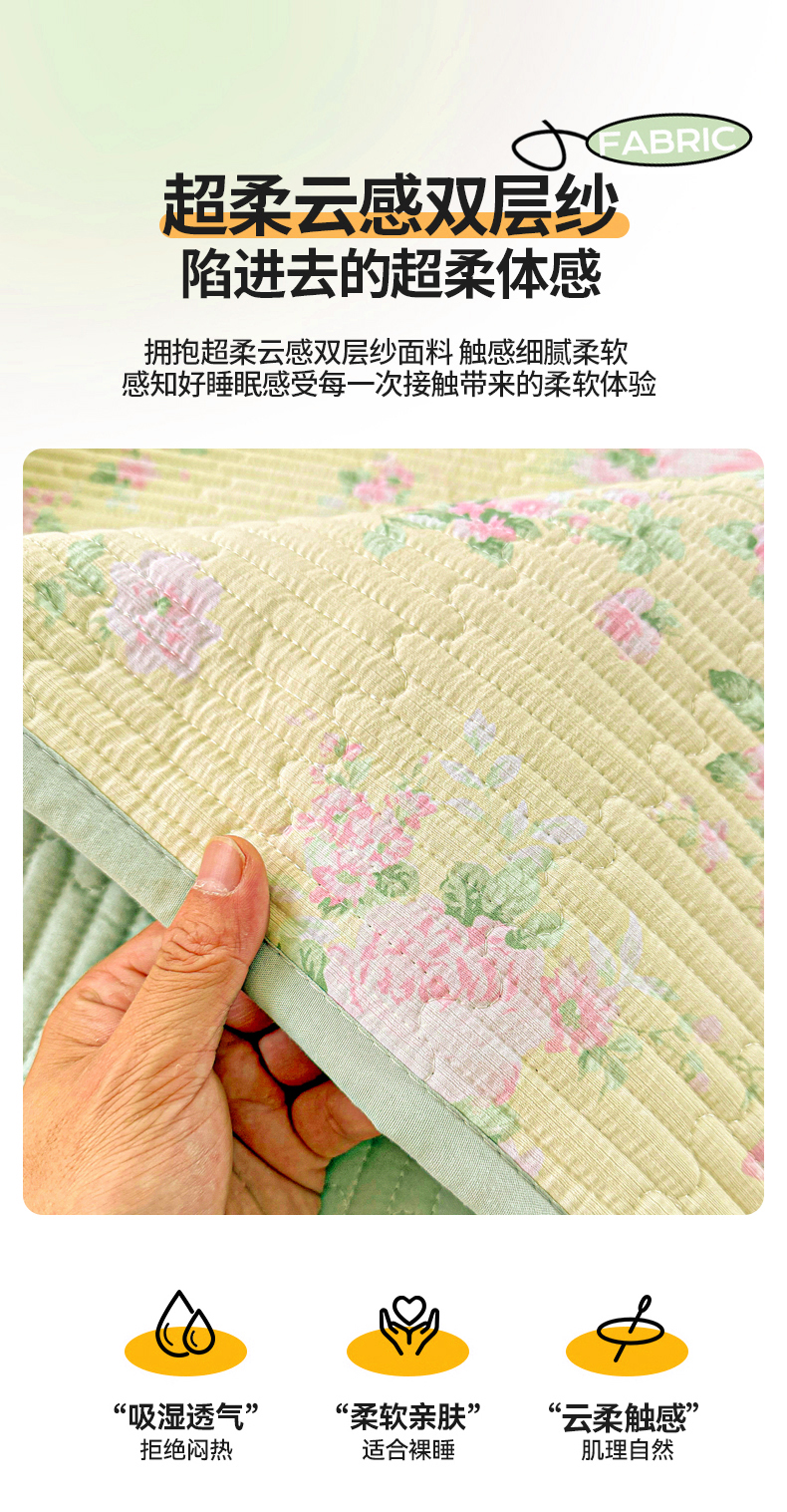 • 91家纺网 家纺一手货源 找家纺 恒尚居 2025新款双层纱床盖床盖单品单床盖云感夹棉床单床垫软床垫-四季款【系列二】 【花仙子】双层纱