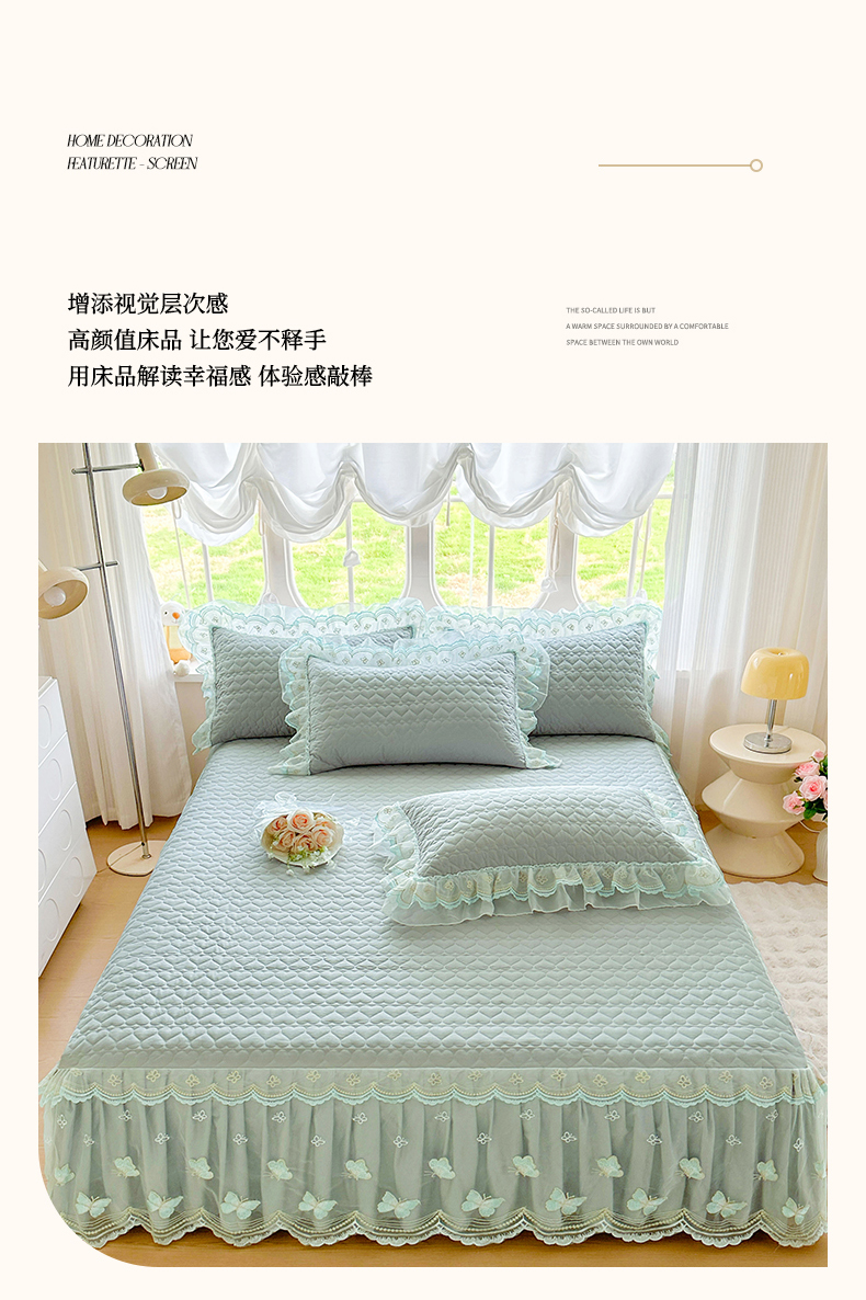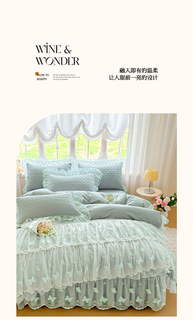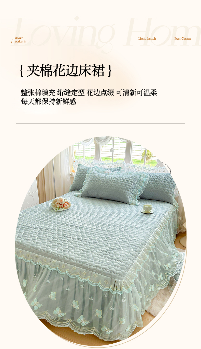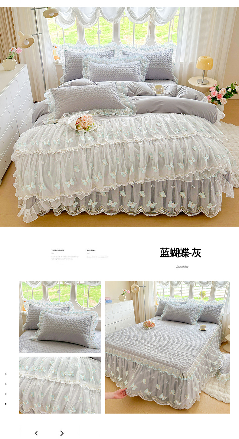 当前位置: 91家纺网 > 商品网购 > 床品套件 > 四件套 > 其它四件套 > 罗艺轩 2025新款全棉纯棉斜纹工艺床裙四件套 蓝蝴蝶-绿色