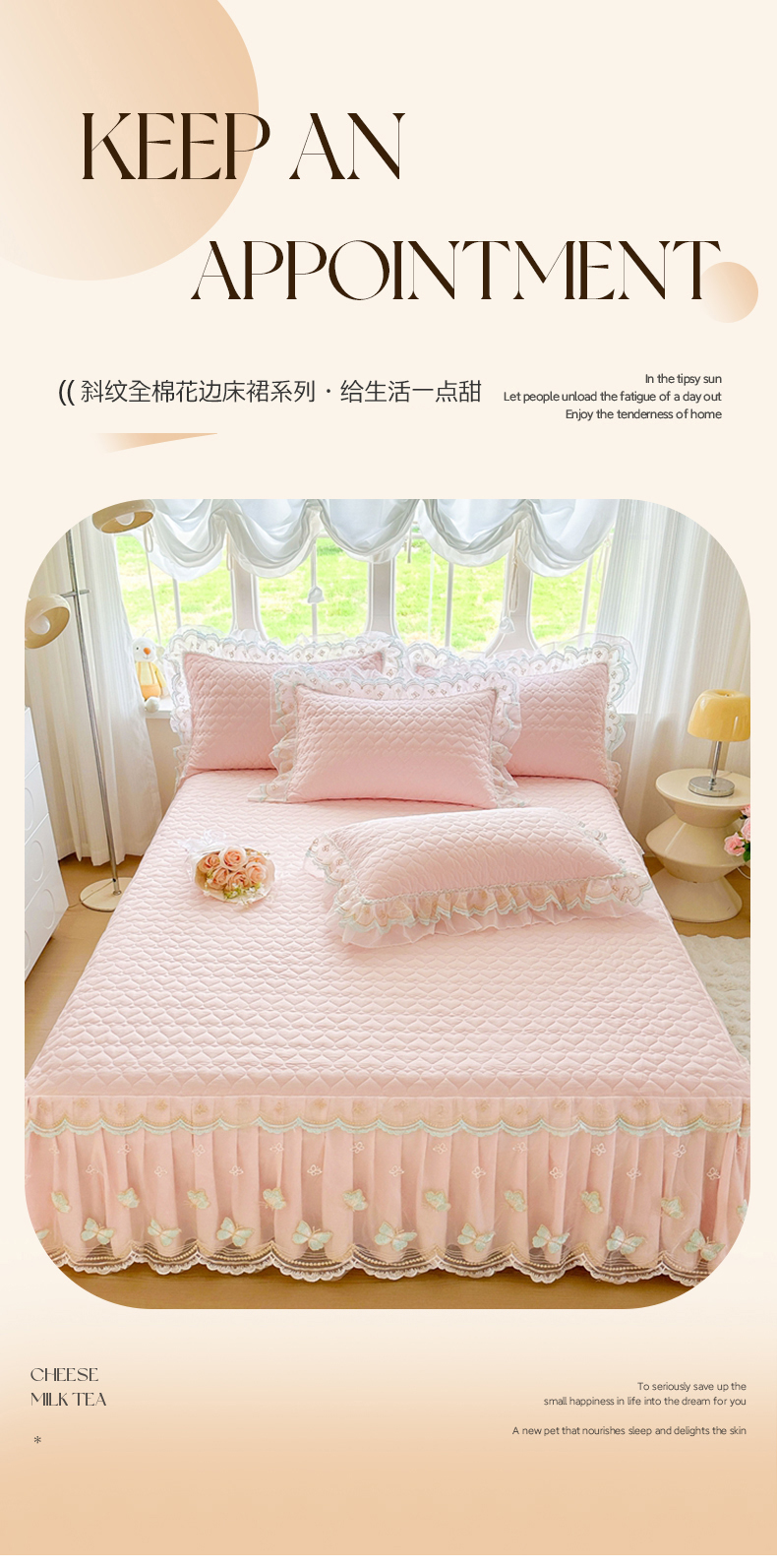 罗艺轩 2025新款全棉纯棉斜纹花边单床裙床裙单件单品床裙 蓝蝴蝶-粉色