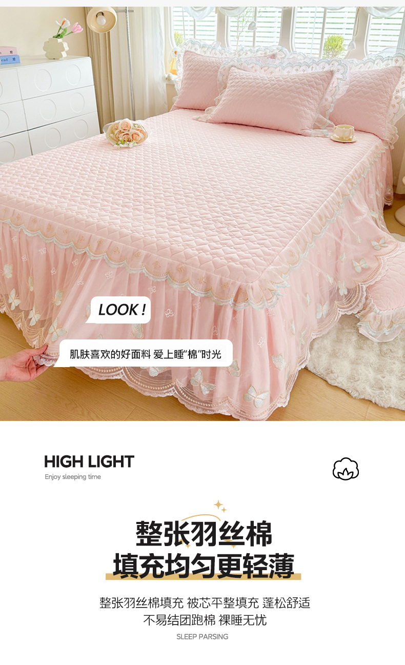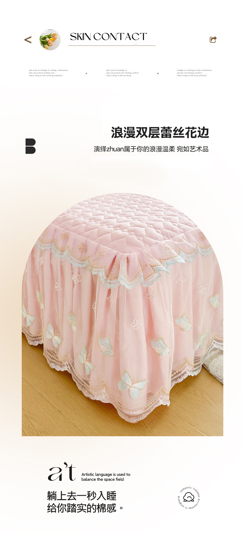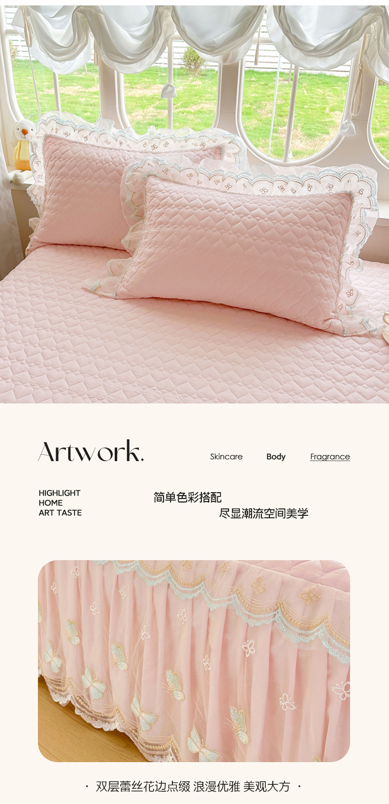 商品名称:罗艺轩 2025新款全棉纯棉斜纹花边单床裙床裙单件单品床裙 蓝蝴蝶-粉色