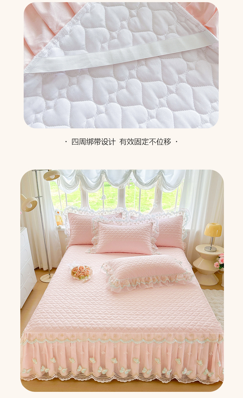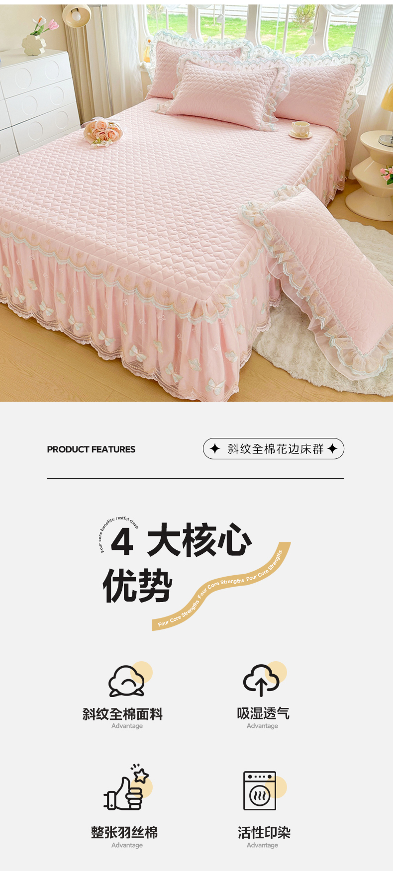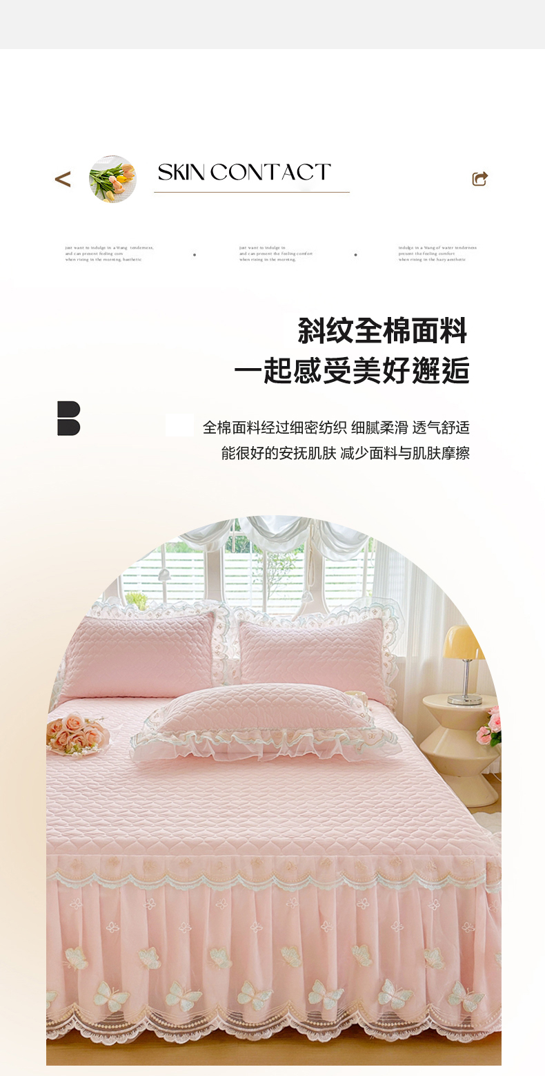 商品名称:罗艺轩 2025新款全棉纯棉斜纹花边单床裙床裙单件单品床裙 蓝蝴蝶-粉色