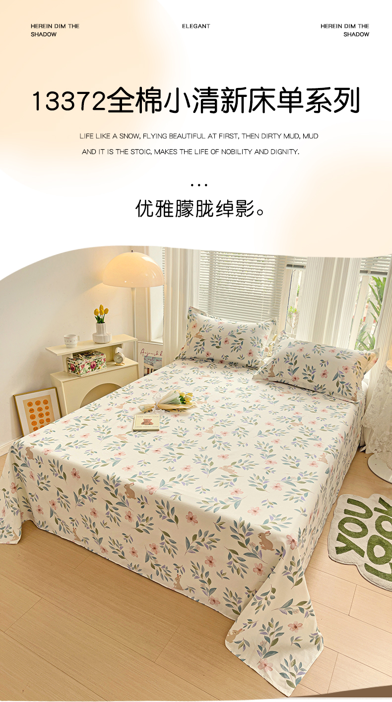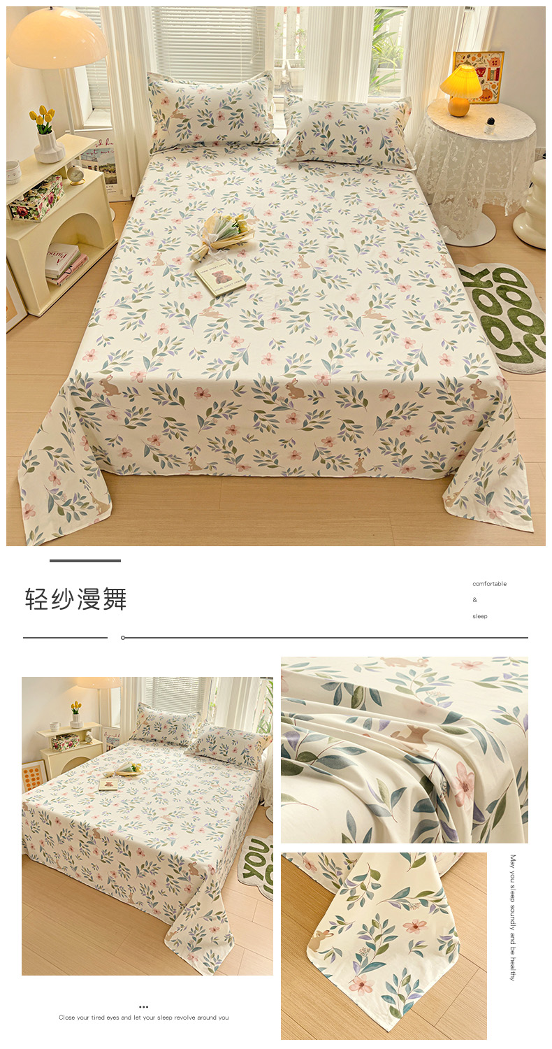 商品名称:金盛纺 2025新款13372全棉印花单品床单 轻纱漫舞
