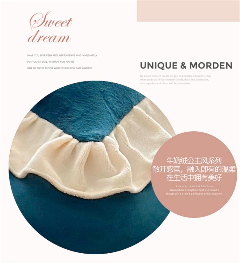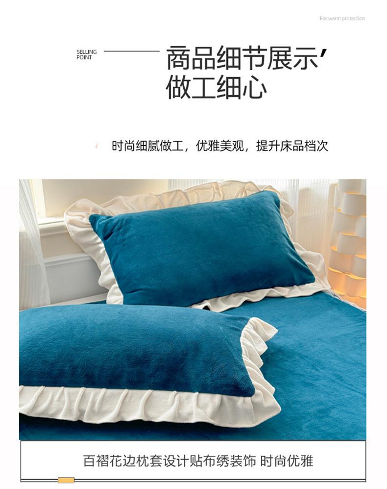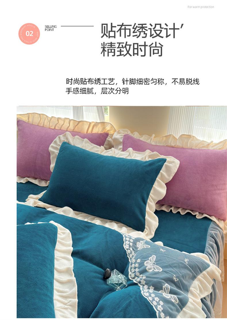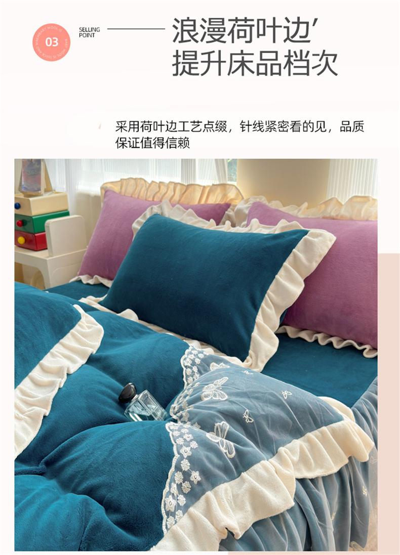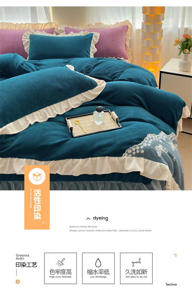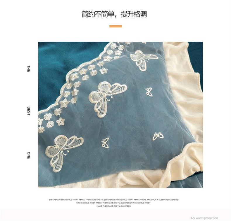 商品名称:睡美人 2025韩版蕾丝牛奶绒套件公主风床裙床单款四件套 花蝴蝶-孔雀蓝