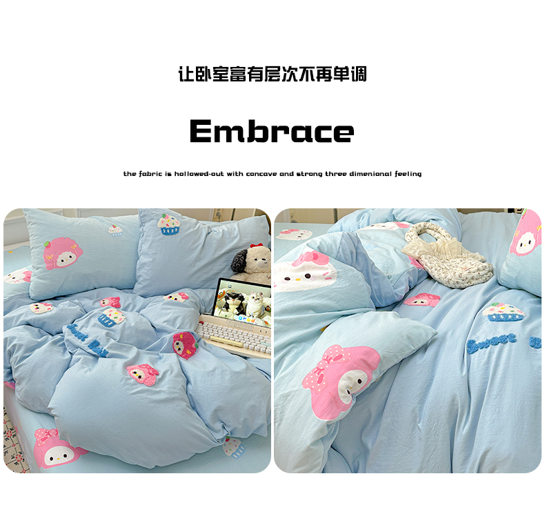 当前位置: 91家纺网 > 商品网购 > 床品套件 > 四件套 > 毛巾绣四件套 > 奈颜 2025新款爆款水洗云朵棉毛巾绣四件套 小美喵喵-浅蓝