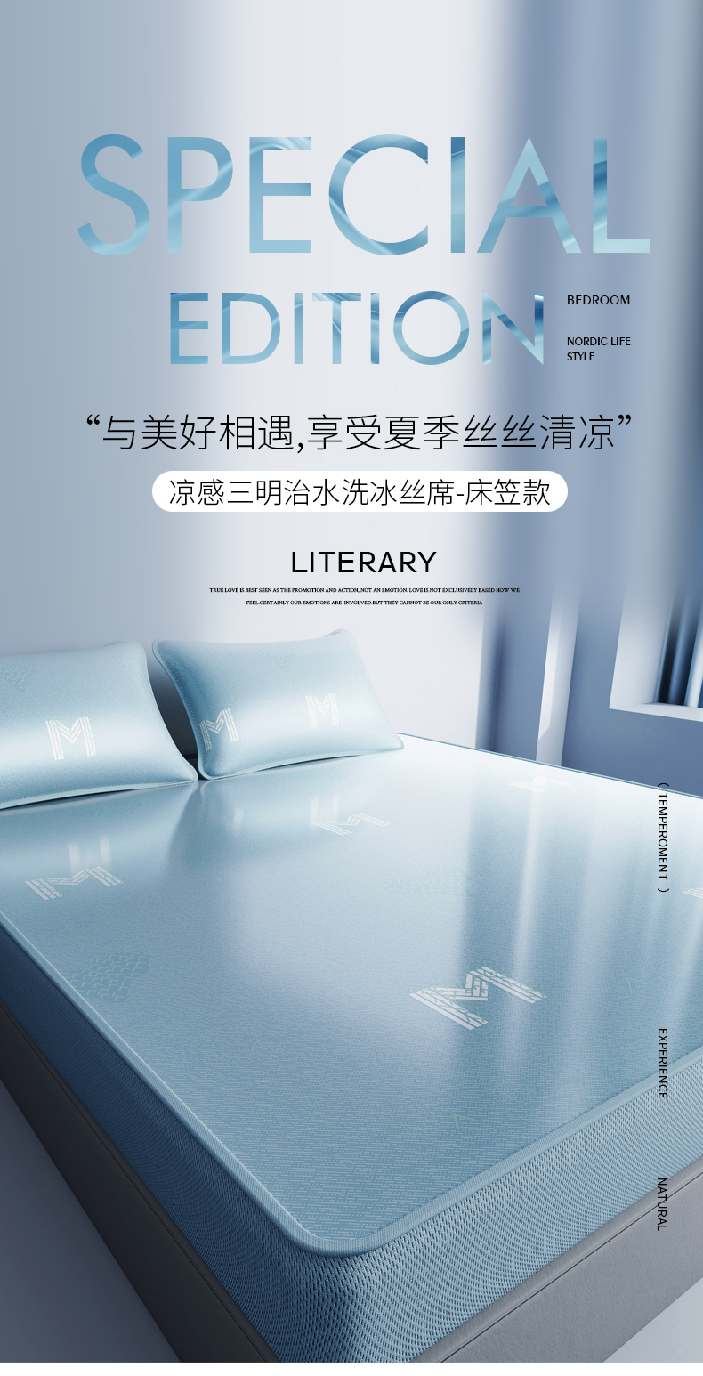 当前位置: 91家纺网 > 商品网购 > 床上用品 > 凉席 > 其他凉席 > 小叮当家纺仓储工厂店 2025新款凉感三明治冰丝席凉席-芳华系列-床笠款-版本二 芳华床笠-字母M(蓝)