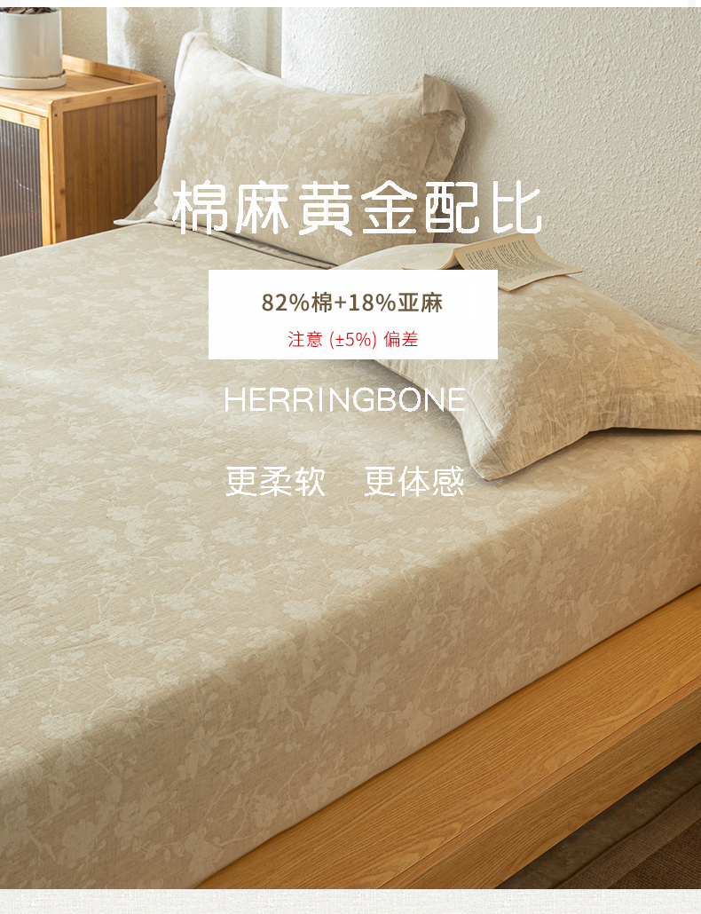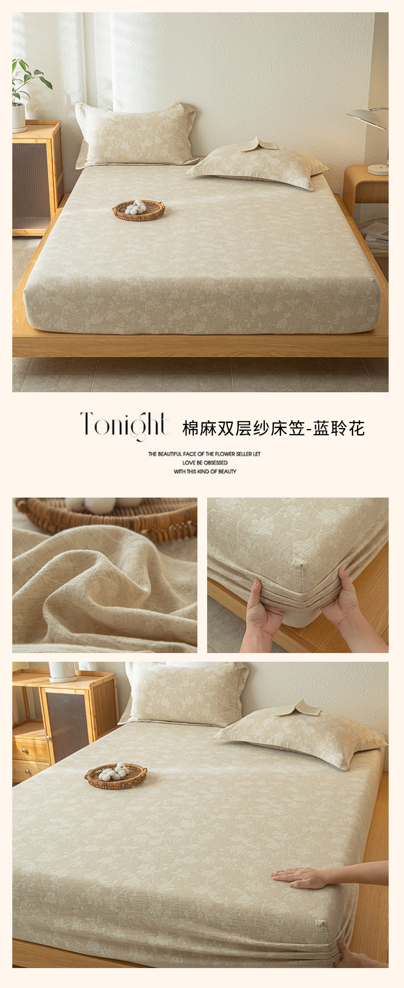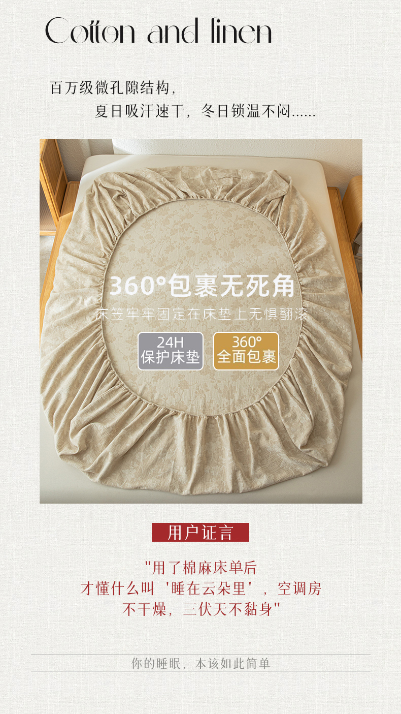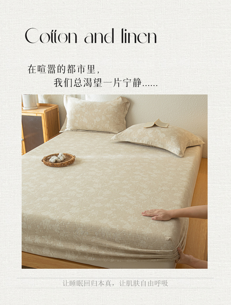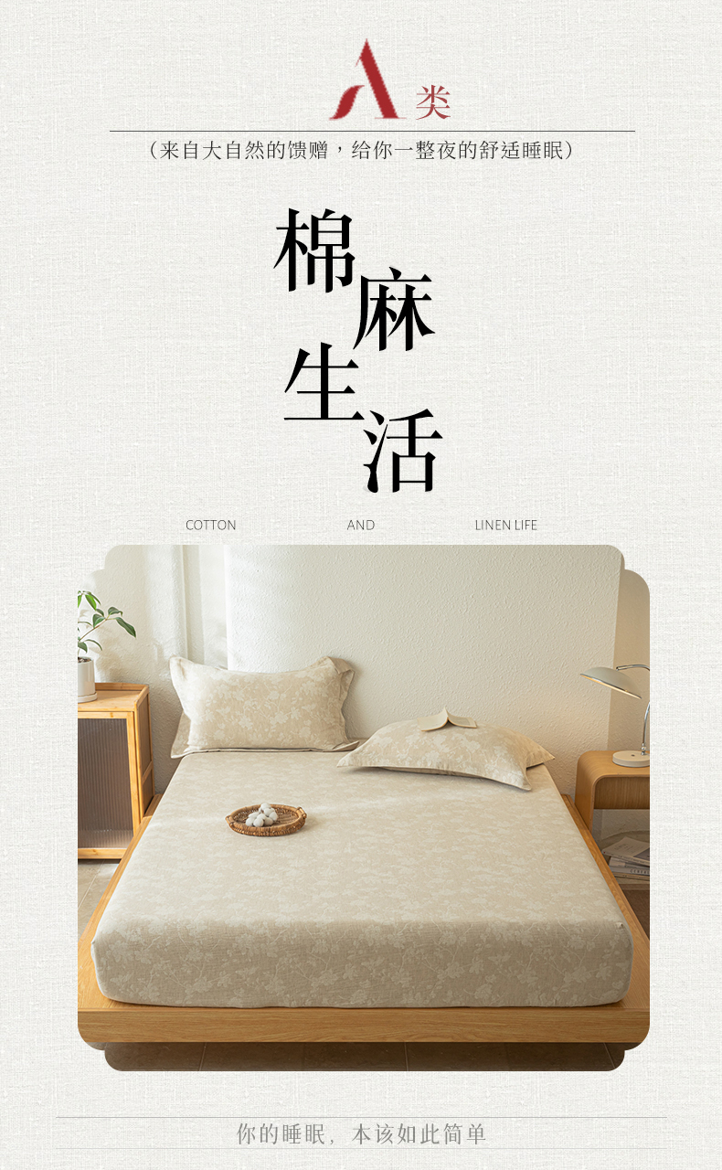 • 91家纺网 家纺一手货源 找家纺 眠博士 2025新款A类棉麻双层纱提花床笠 棉麻双层纱床笠-蓝聆花