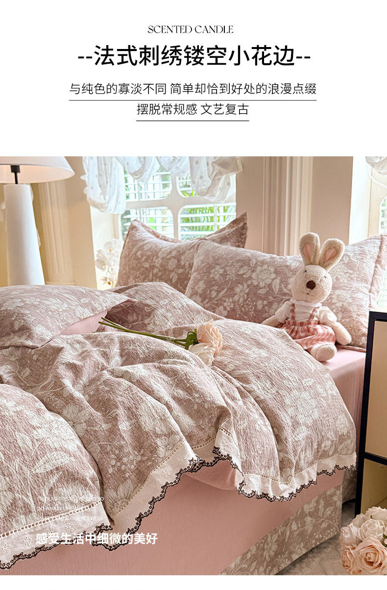 (总)韩约家纺 2026新款韩式花边古法棉感床盖四件套,知否,午后时光,漫花蝶舞,莓莓果,花影,甜心狗,初遇,萝莉,雨沫