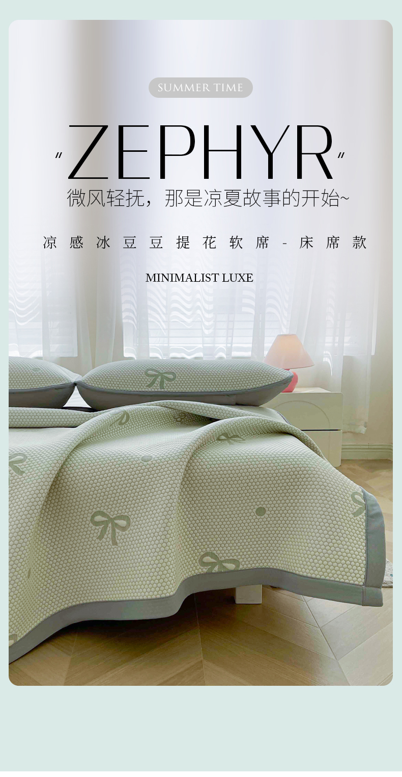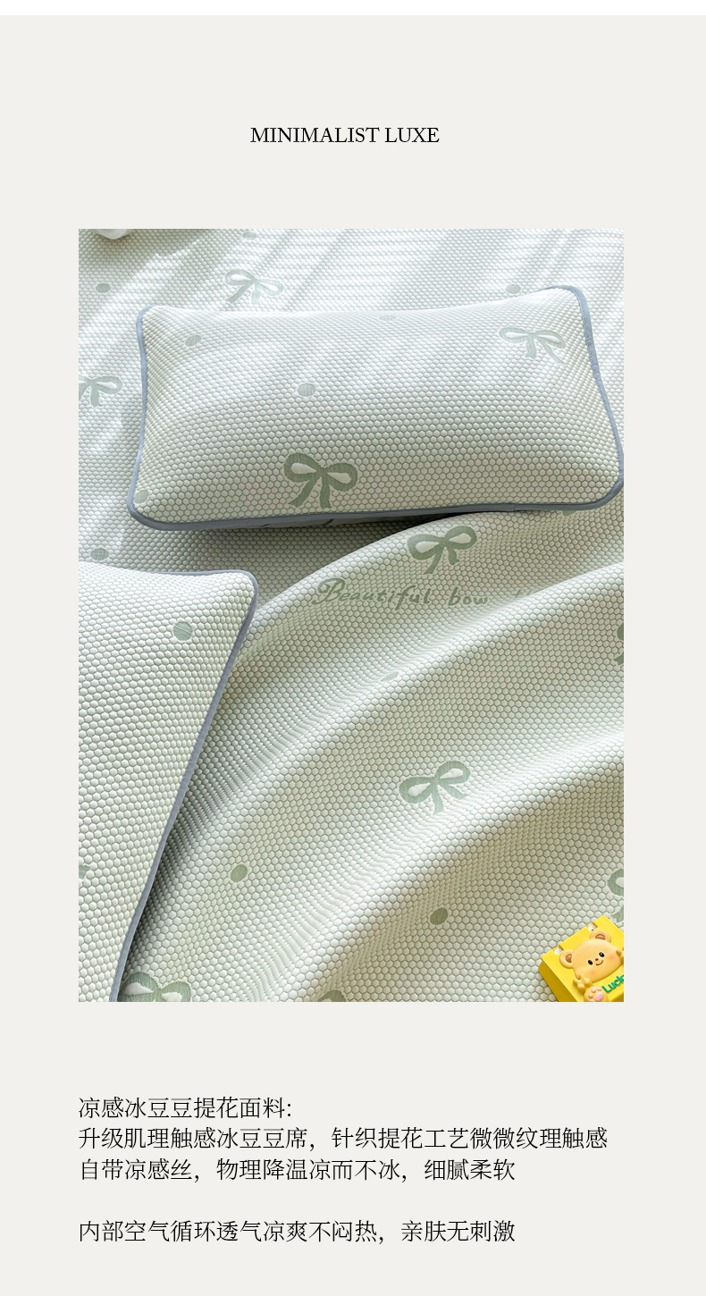 当前位置: 91家纺网 > 商品网购 > 床上用品 > 凉席 > 其他凉席 > 小叮当家纺仓储工厂店 2025新款冰豆豆凉席冰丝席凉豆豆凉席-灵萌系列-床席款 灵萌条席-圆点蝴蝶结-绿